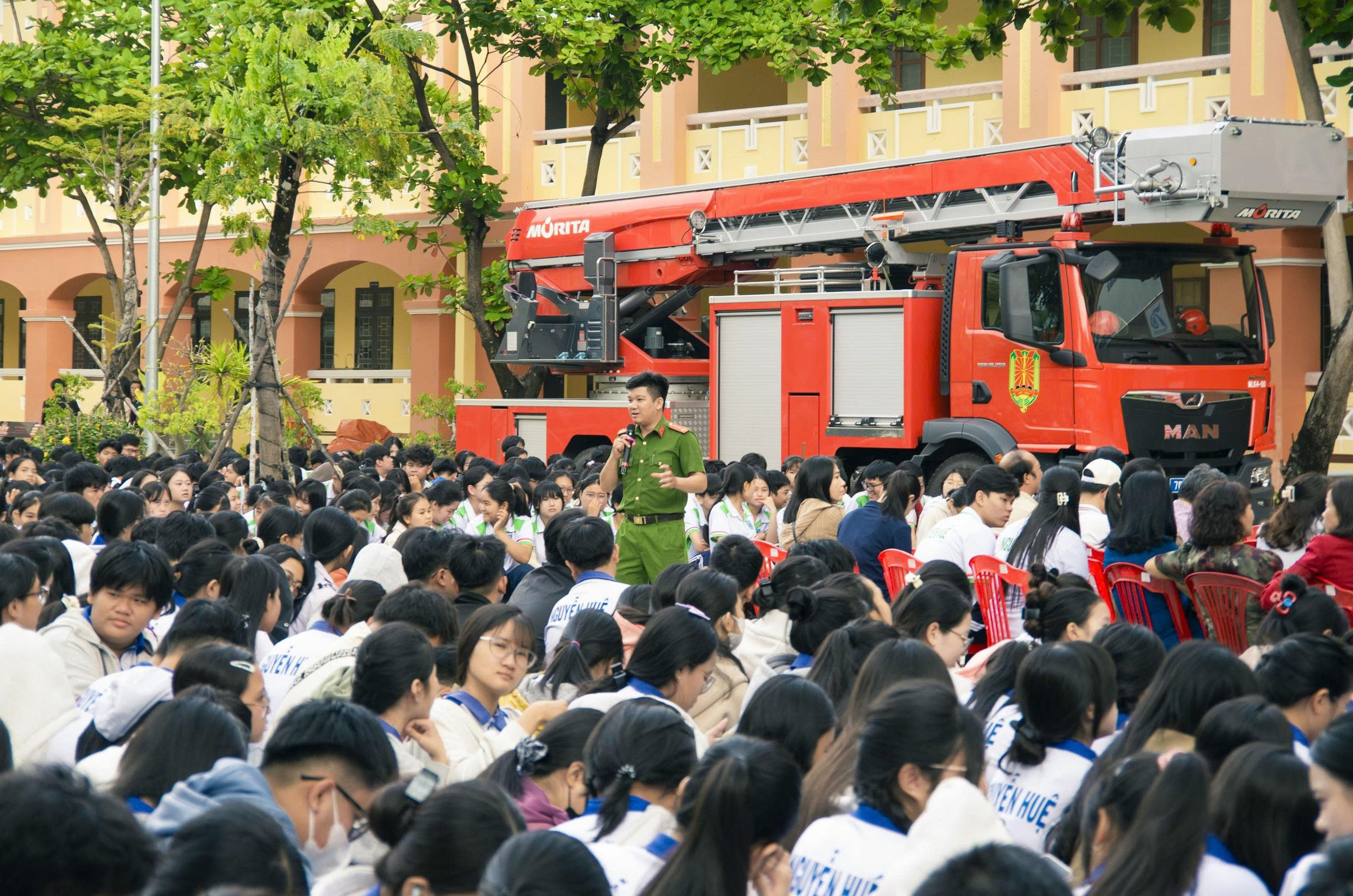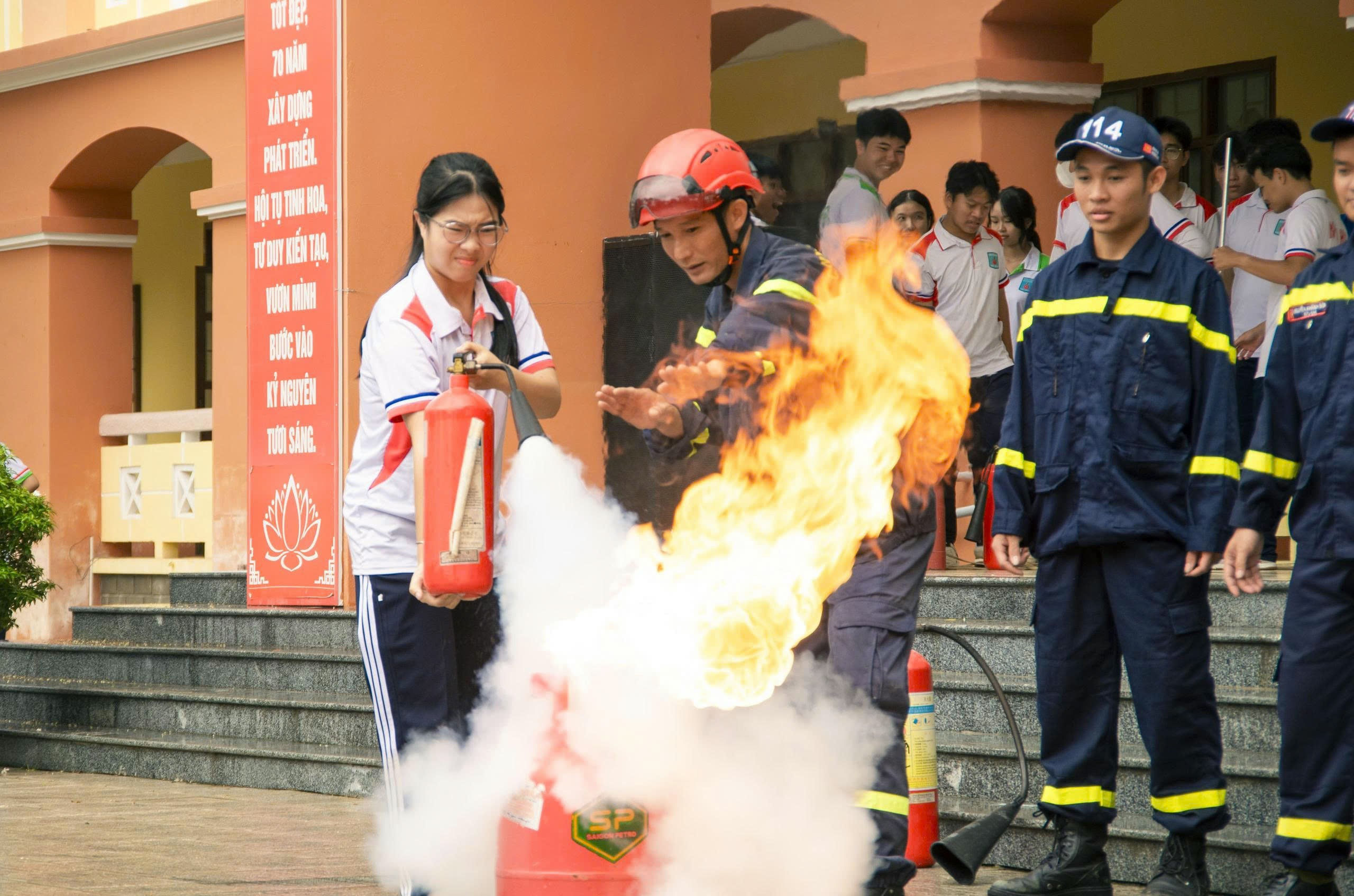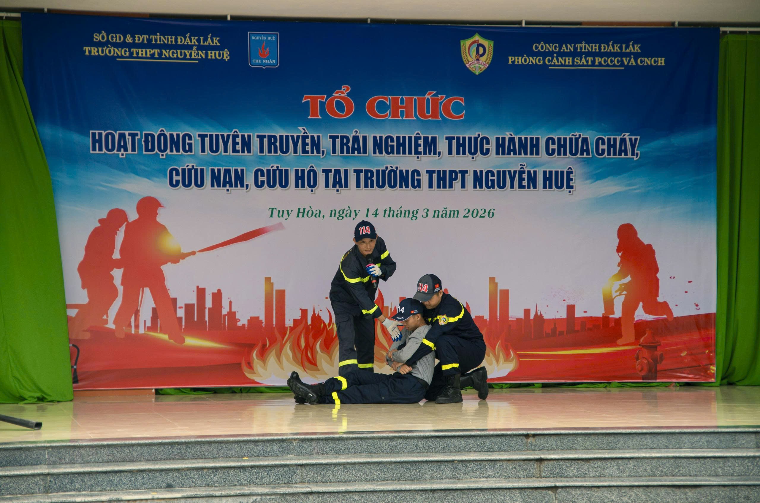CHƯƠNG TRÌNH TRẢI NGHIỆM, THỰC HÀNH CHỮA CHÁY, CỨU NẠN, CỨU HỘ TẠI TRƯỜNG THPT NGUYỄN HUỆ