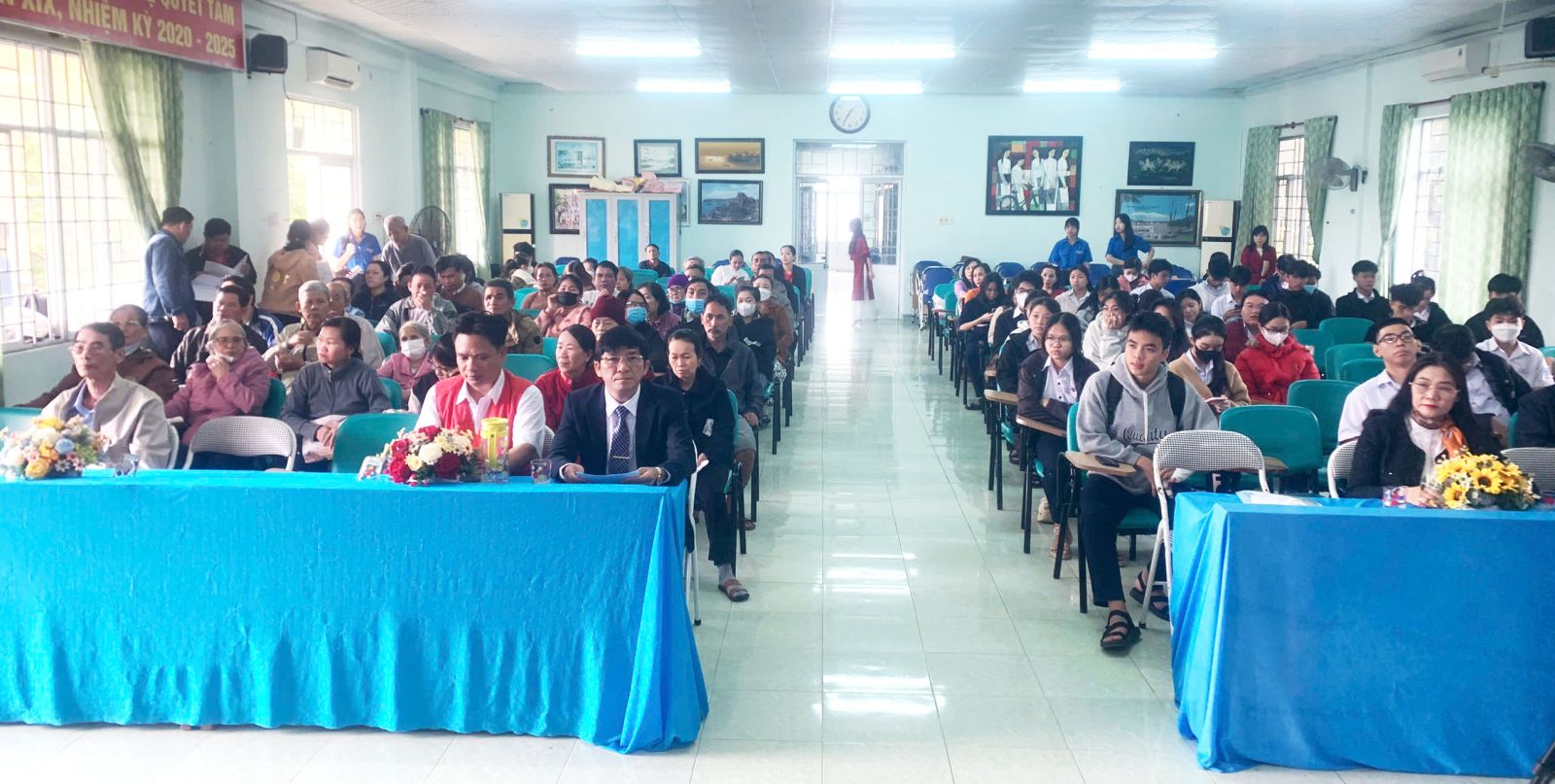 Đến dự với buổi trao quà có ông Nguyễn Hữu Sửu – Phó Chủ Tịch Hội chữ thập đỏ tỉnh Phú Yên, Thầy Lê Thành Phương – Hiệu trưởng nhà trường, Cô Đặng Thị Hải Anh – Chủ tịch Hội chữ Thập đỏ – Phó hiệu trưởng; Cô Võ Thị Hồng Vân – Trưởng ban đại diện CMHS nhà trường; Cô Tăng Huỳnh Thanh Trang – Chủ tịch Công Đoàn nhà trường; Cô Ngô Minh Hậu – Bí thư Đoàn thanh niên và các thầy cô là những nhà tài trợ.