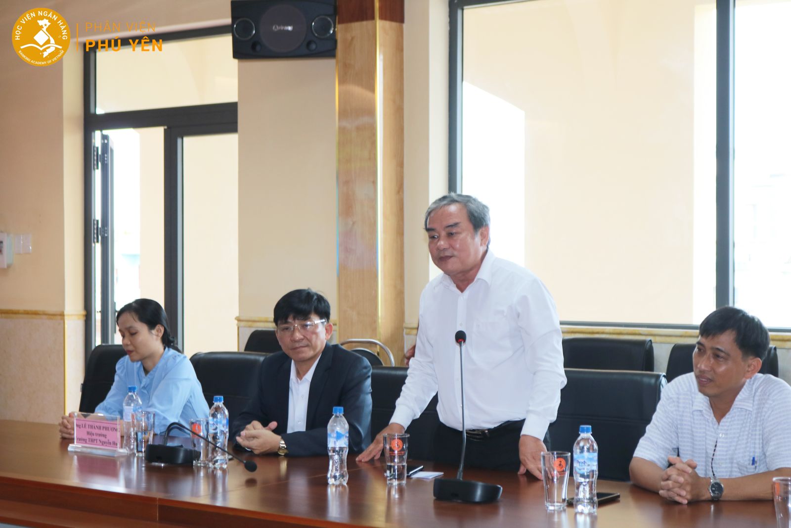 Đồng quan điểm, ông Nguyễn Văn Thuyền – Phó Hiệu trưởng trường THPT Nguyễn Huệ bày tỏ sự xúc động khi đến Phân viện. Ông trân trọng sự đón tiếp trọng thị, ấm áp từ Học viện Ngân hàng – Phân viện Phú Yên và xem đây không chỉ là một buổi ký kết hợp tác mà còn là dịp để kết nối, sẻ chia những giá trị ý nghĩa trong giáo dục. Ông chia sẻ những trăn trở về sự phát triển của nền giáo dục tỉnh nhà, nhấn mạnh rằng việc hợp tác giữa hai đơn vị sẽ góp phần tạo nên những chuyển biến tích cực, mang lại nhiều cơ hội học tập và phát triển kỹ năng cho học sinh. Ông kỳ vọng sự phối hợp chặt chẽ giữa Trường THPT Nguyễn Huệ và Phân viện Phú Yên sẽ không chỉ hỗ trợ học sinh tiếp cận sớm với kiến thức thực tiễn mà còn mở ra những định hướng nghề nghiệp rõ ràng, giúp các em vững bước trên con đường tương lai. Khẳng định tinh thần đồng hành, ông cam kết Trường THPT Nguyễn Huệ luôn sẵn sàng hợp tác, hỗ trợ, cùng Phân viện triển khai các chương trình giáo dục, hướng nghiệp và đào tạo kỹ năng, góp phần nâng cao chất lượng giáo dục địa phương và tạo điều kiện tốt nhất cho thế hệ trẻ phát triển.