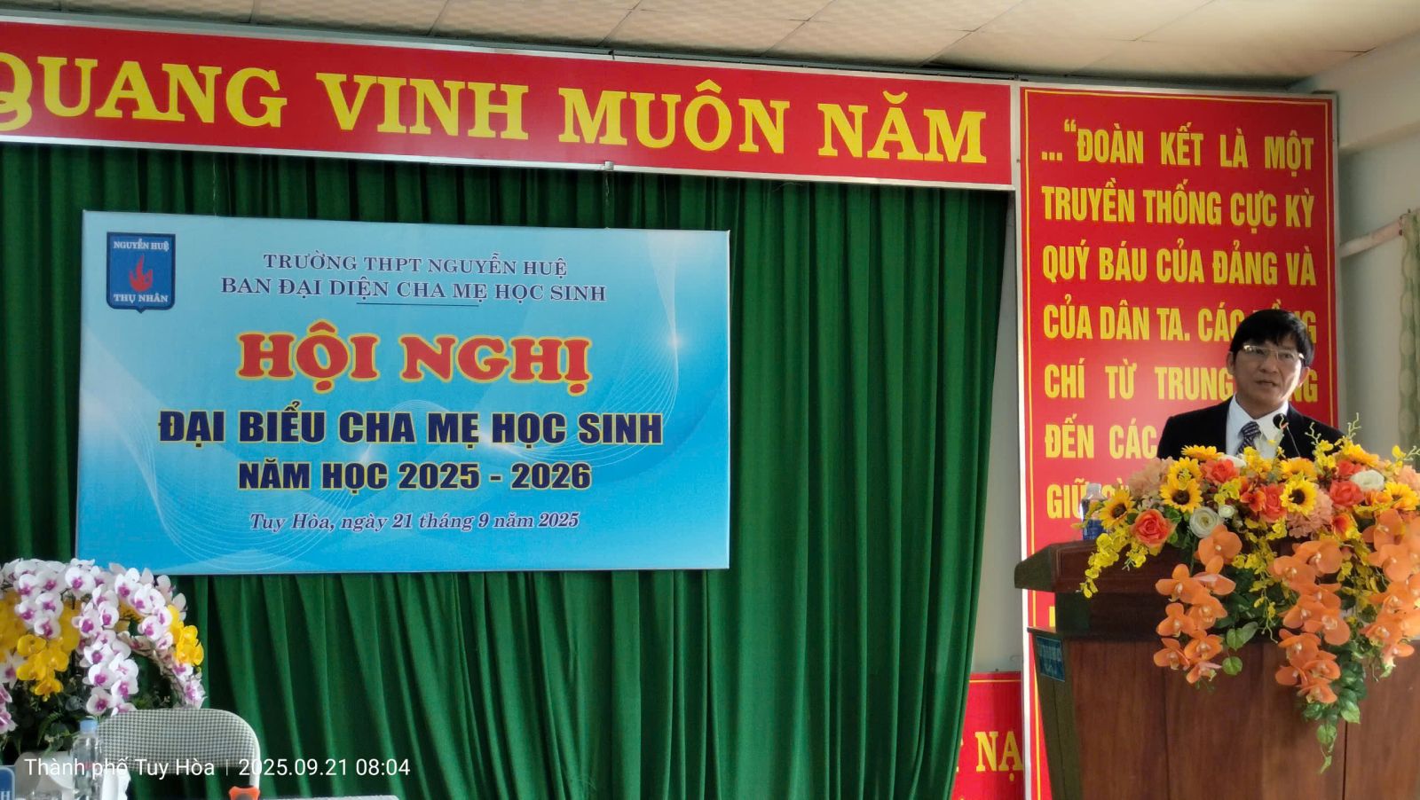 Sáng ngày 21/9/2025, được sự nhất trí của Đảng ủy, Ban giám hiệu, Ban đại diện cha mẹ học sinh (ĐDCMHS) nhà trường, trường THPT Nguyễn Huệ và Ban đại diện cha mẹ học sinh nhà trường long trọng tổ chức Hội nghị đại biểu cha mẹ học sinh năm học 2025 – 2026.