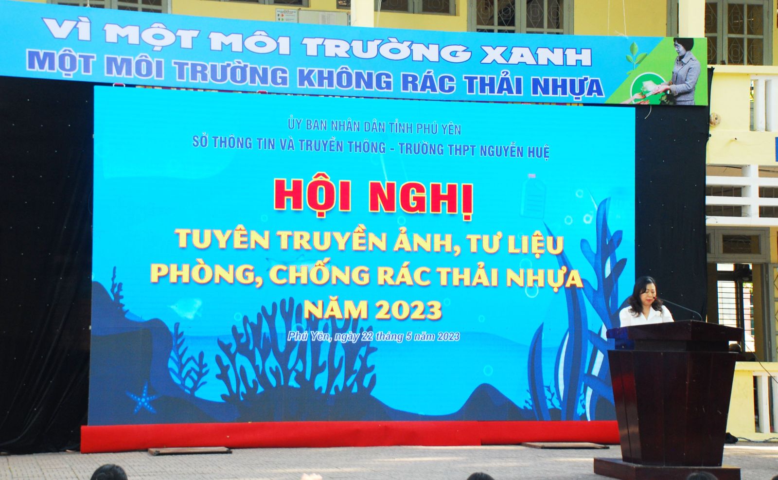 Hôm qua 22/05/2023, Sở Thông tin và Truyền thông tỉnh Phú Yên phối hợp với Trường THPT Nguyễn Huệ tổ chức chương trình Hội nghị tuyên truyền ảnh, tư liệu phòng, chống rác thải nhựa năm 2023.