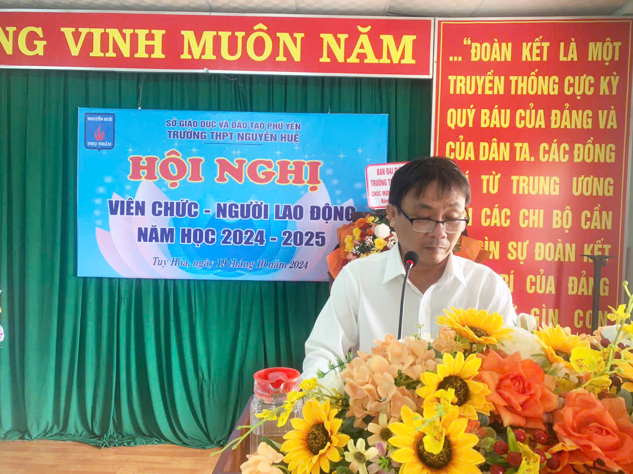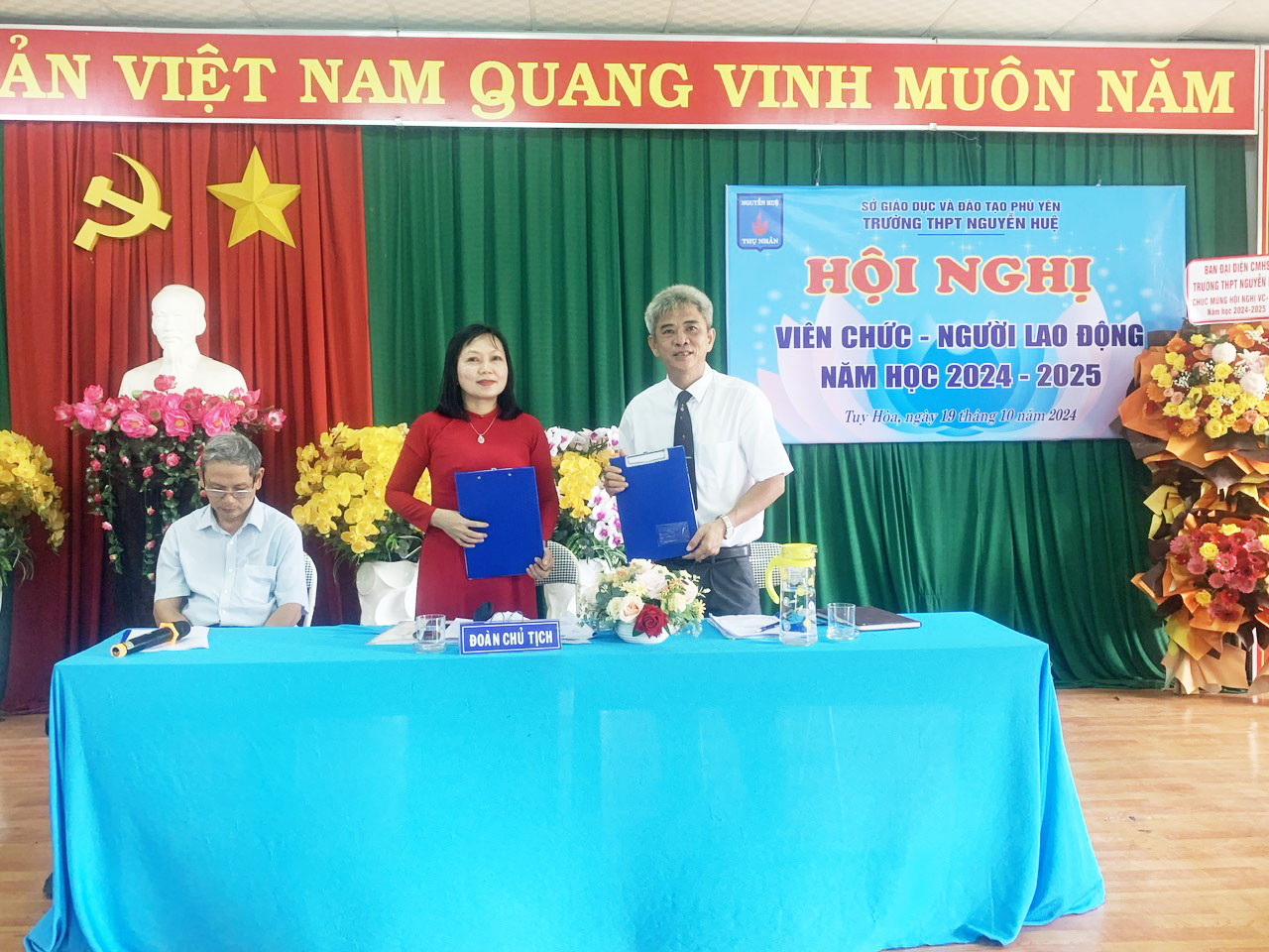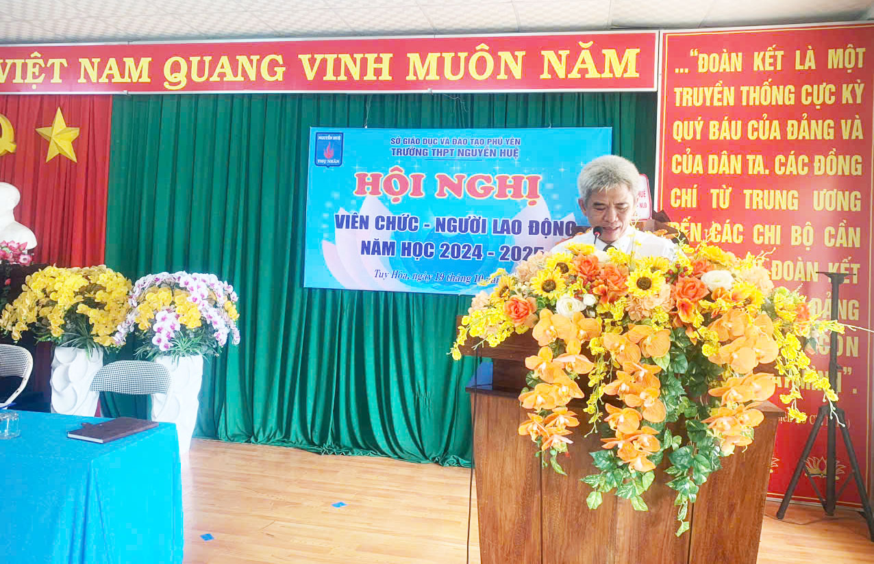 Sáng ngày 19/10/2024 trường THPT Nguyễn Huệ phối hợp Công đoàn cơ sở tổ chức Hội nghị viên chức và người lao động năm học 2024-2025.