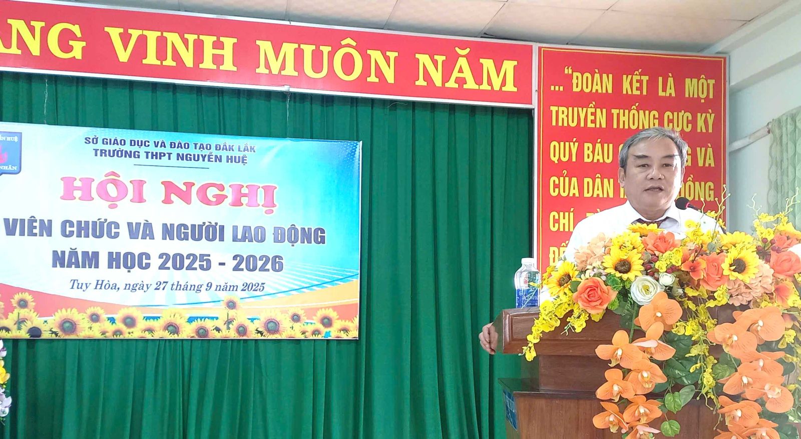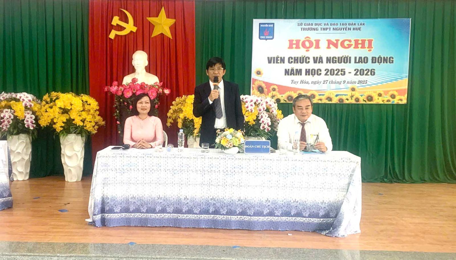 Sáng ngày 27/9/2025 trường THPT Nguyễn Huệ long trọng tổ chức Hội nghị viên chức và người lao động năm học 2025-2026.