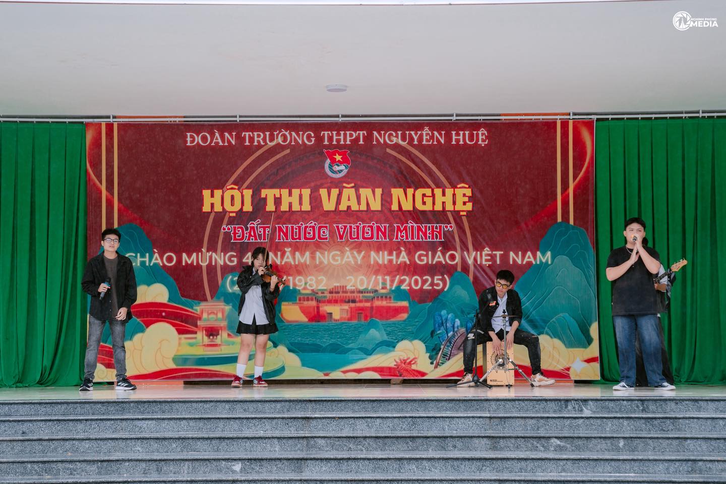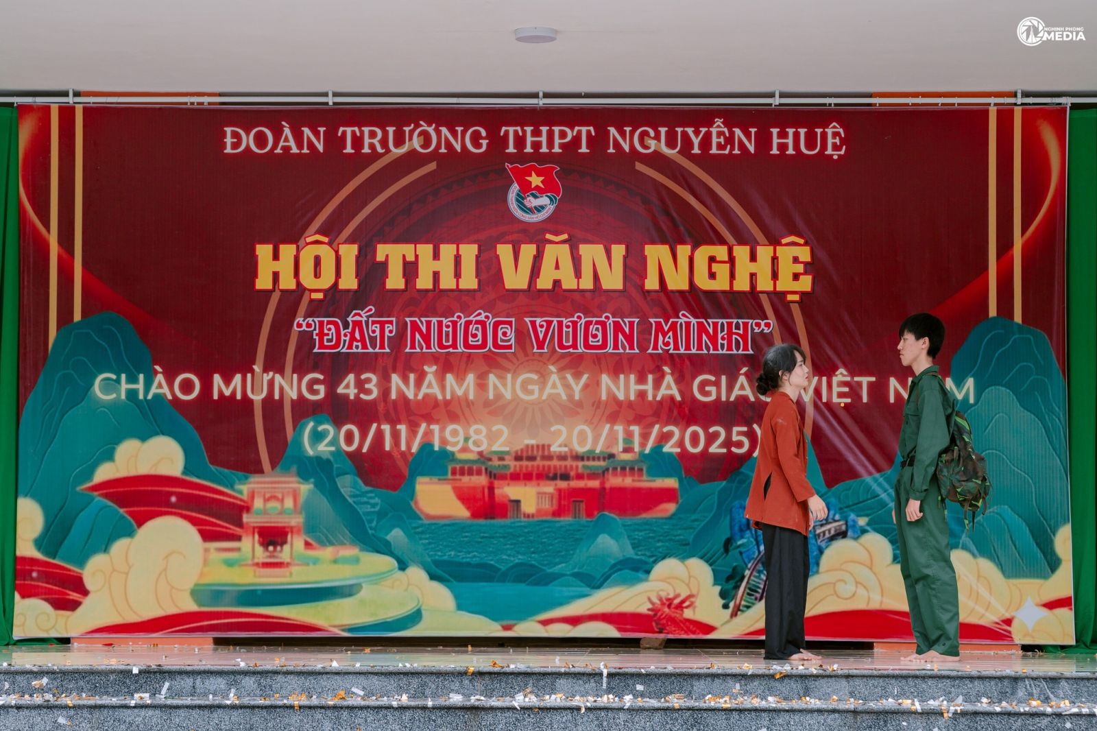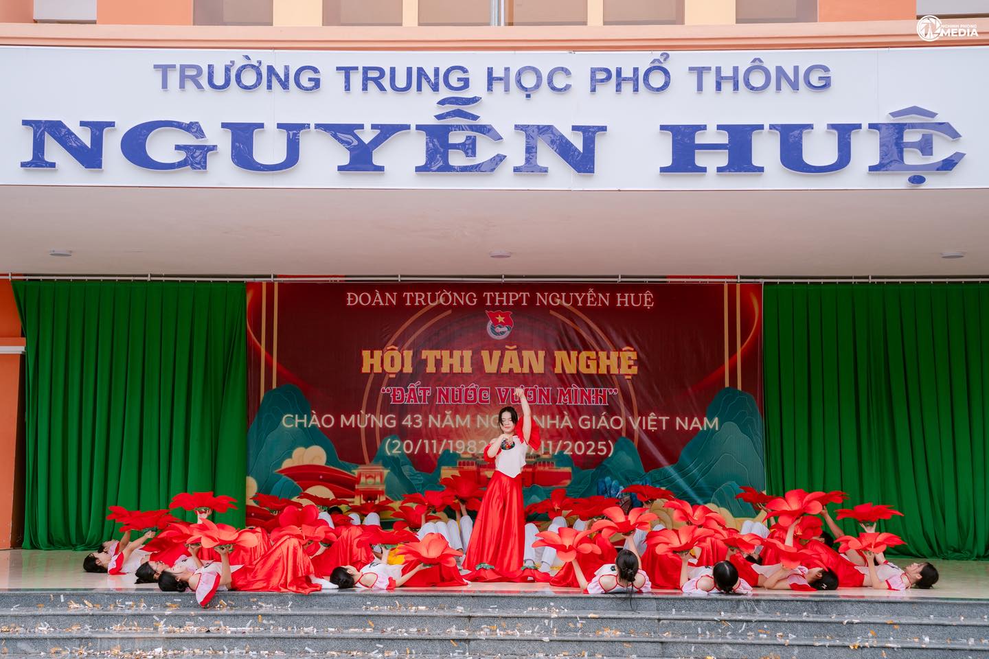 Hòa trong không khí hân hoan của cả nước hướng tới chào mừng 43 năm Ngày Nhà giáo Việt Nam (20/11/1982 – 20/11/2025) và gửi lời Tri ân sâu sắc tới quý thầy cô giáo, ngày 16/11/2025, Đoàn trường THPT Nguyễn Huệ đã tổ chức Hội thi Văn nghệ với chủ đề “Đất nước vươn mình”.