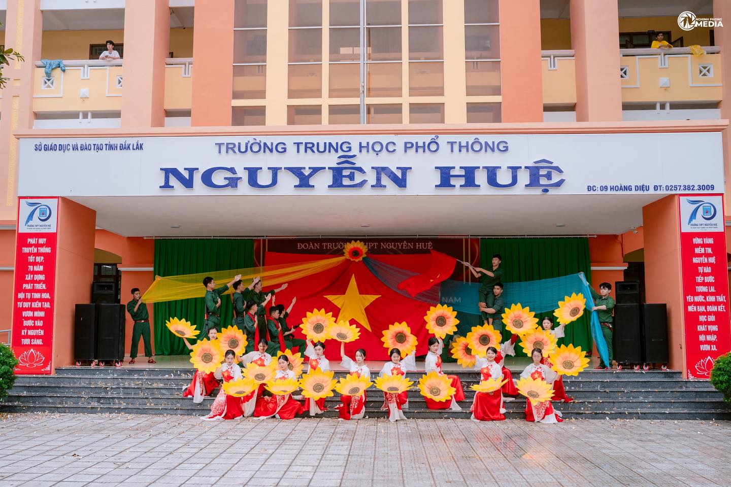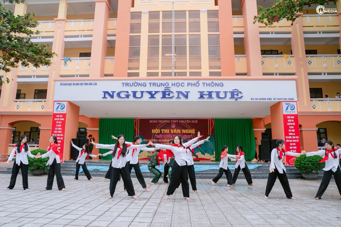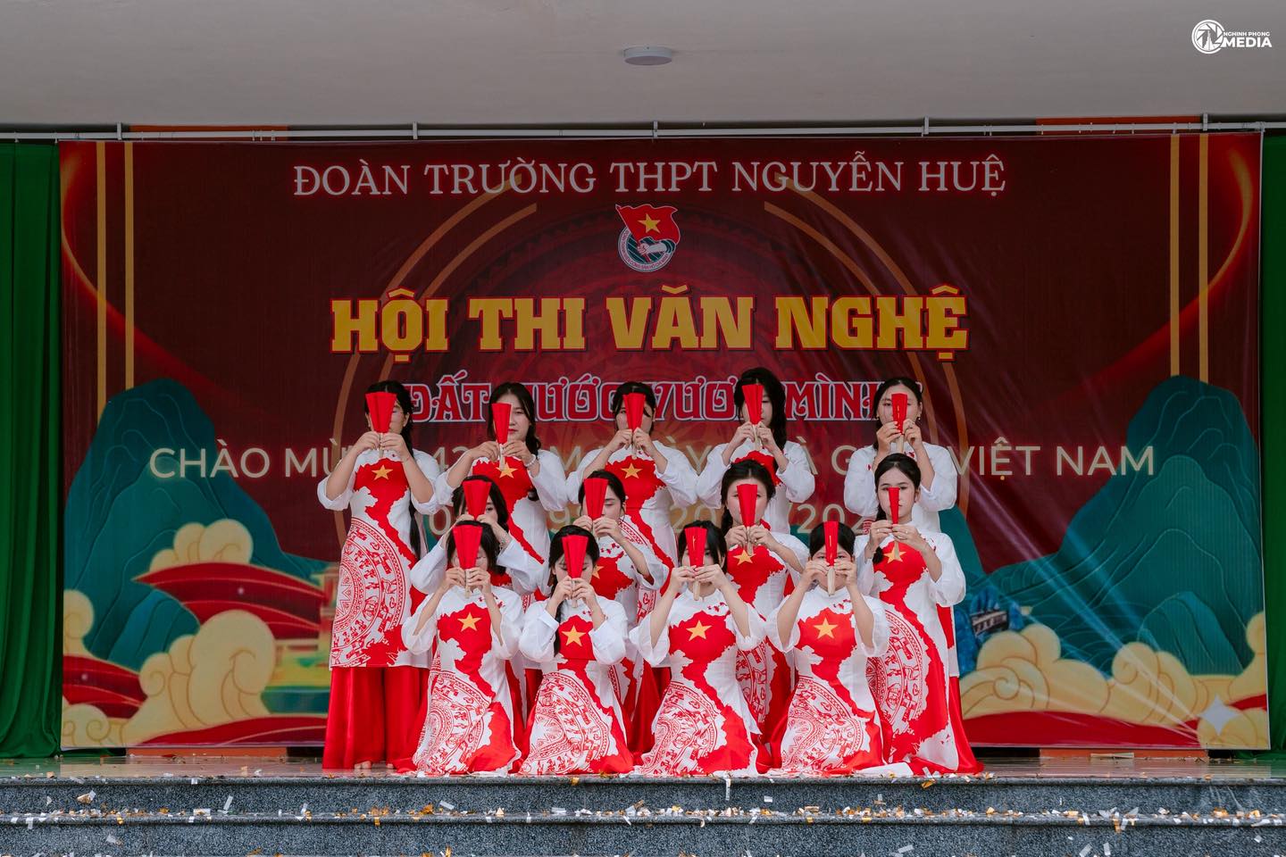 Hòa trong không khí hân hoan của cả nước hướng tới chào mừng 43 năm Ngày Nhà giáo Việt Nam (20/11/1982 – 20/11/2025) và gửi lời Tri ân sâu sắc tới quý thầy cô giáo, ngày 16/11/2025, Đoàn trường THPT Nguyễn Huệ đã tổ chức Hội thi Văn nghệ với chủ đề “Đất nước vươn mình”.