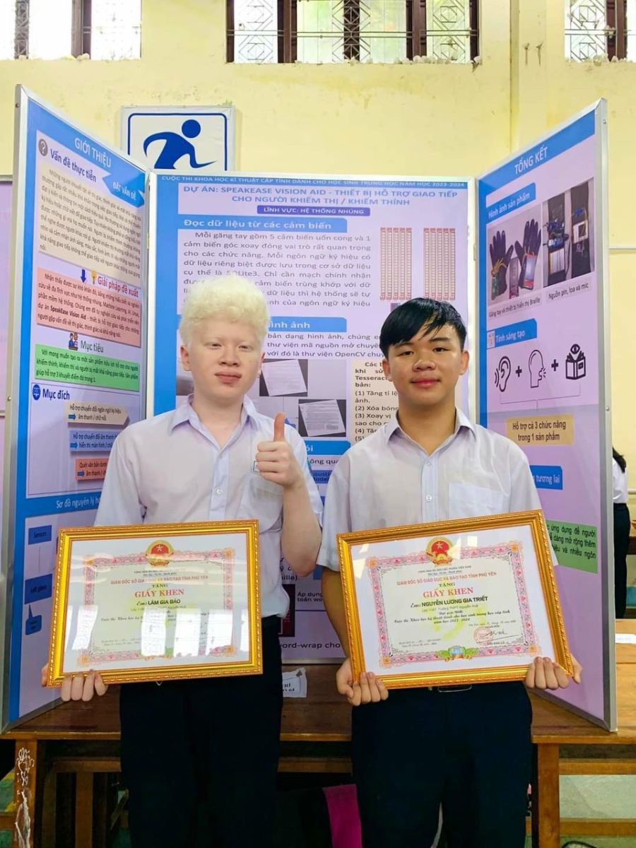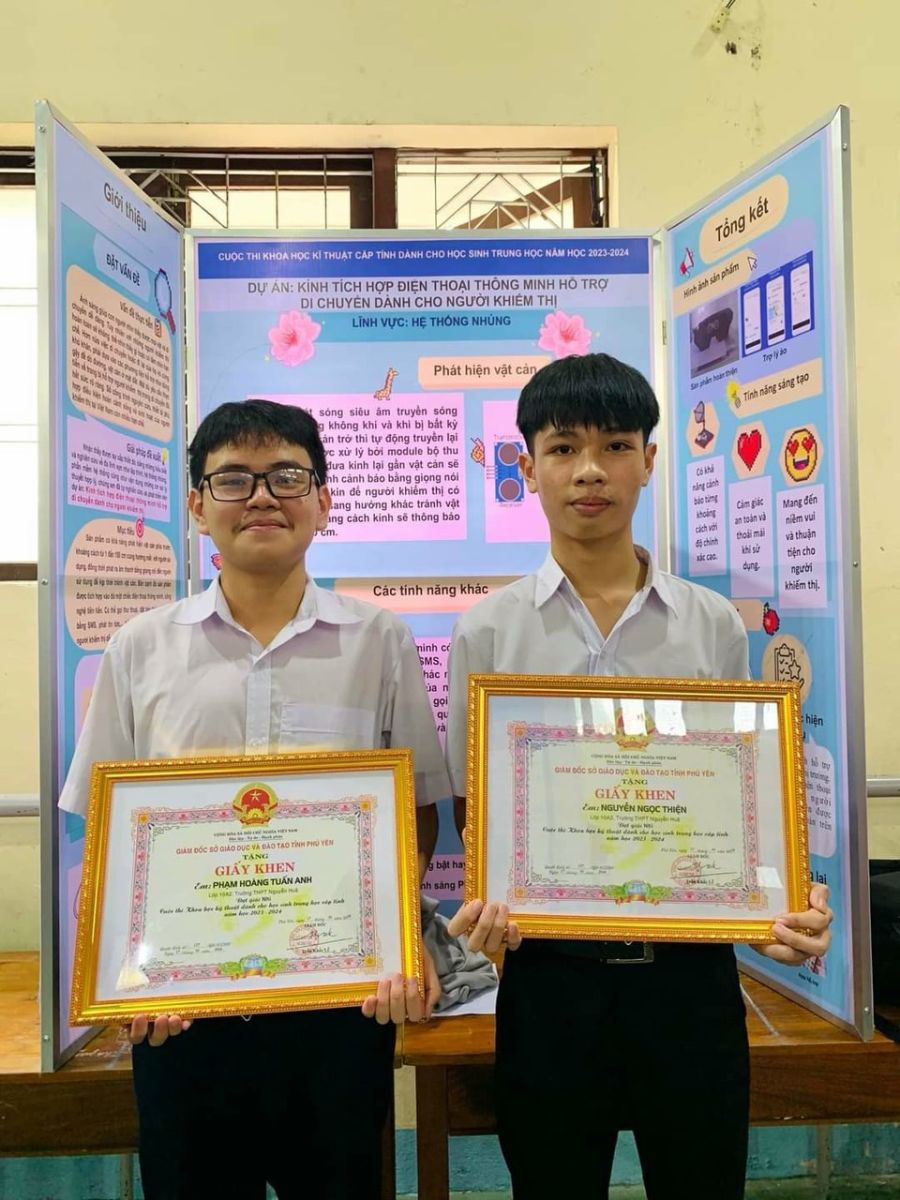 – Giải Nhất: Dự án “SpeakEase Vision Aid”, lĩnh vực Robot và máy thông minh của em Nguyễn Lương Gia Triết, lớp 11A7 và em Lâm Gia Bảo, lớp 11A9. Và là dự án xuất sắc được chọn tham dự Cuộc thi KHKT cấp quốc gia.