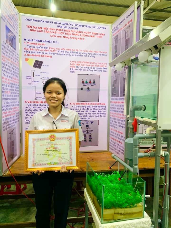 – Giải Nhì: Dự án “Mô hình phát điện sử dụng nước sinh hoạt nhà cao tầng kết hợp pin năng lượng mặt trời”, lĩnh vực Năng lượng Vật Lý của em Nguyễn Như Quỳnh, lớp 11A2.