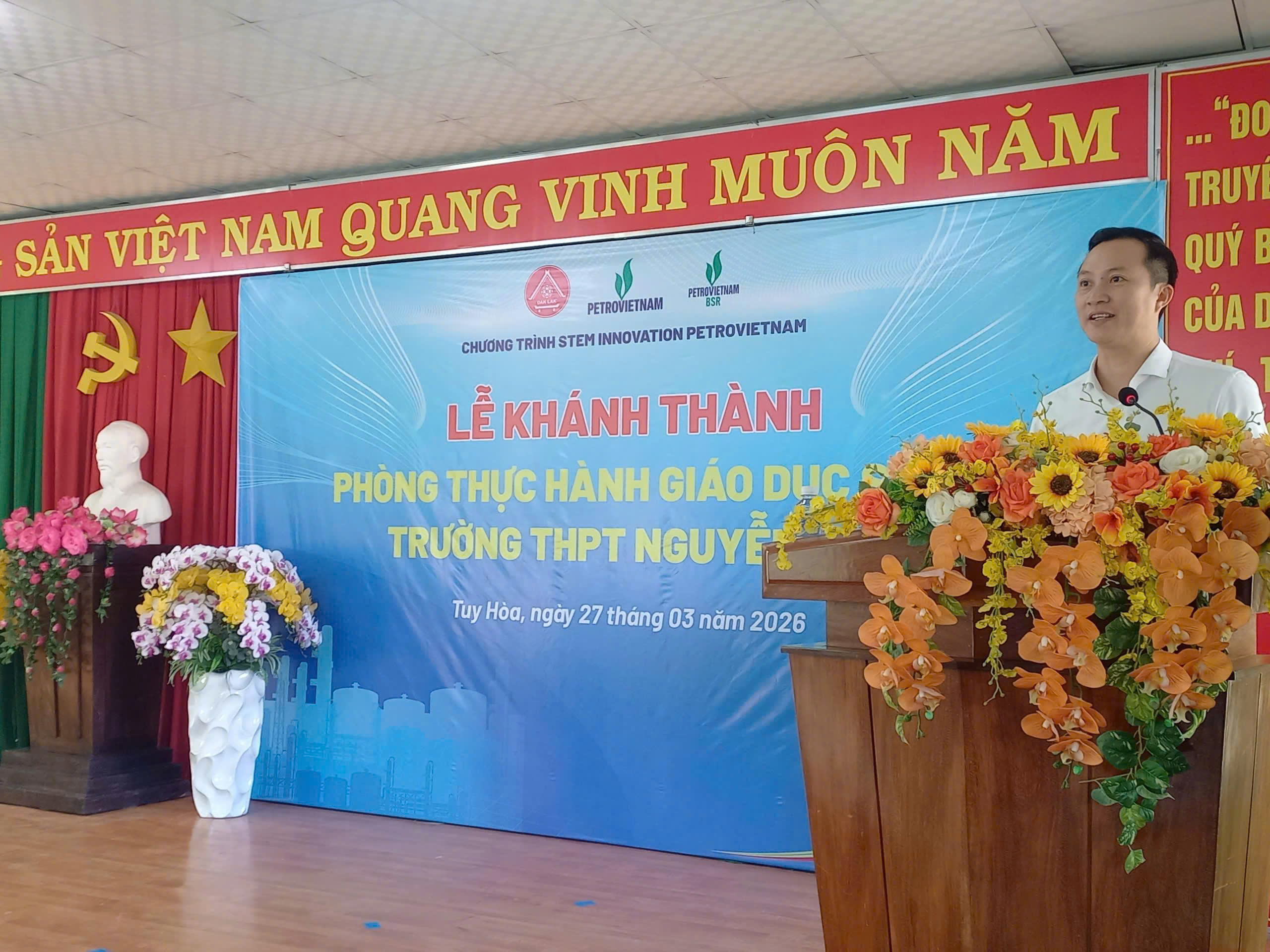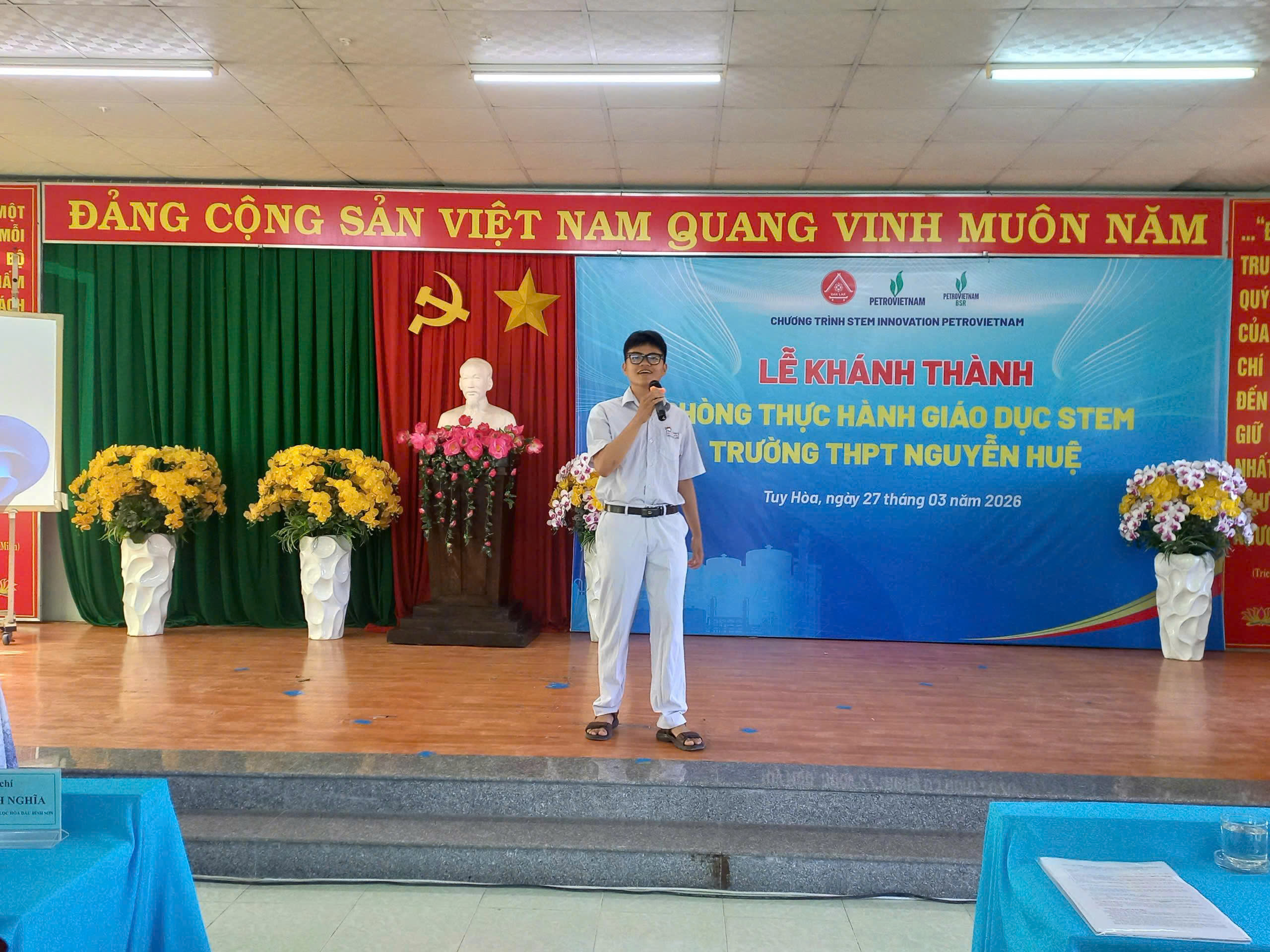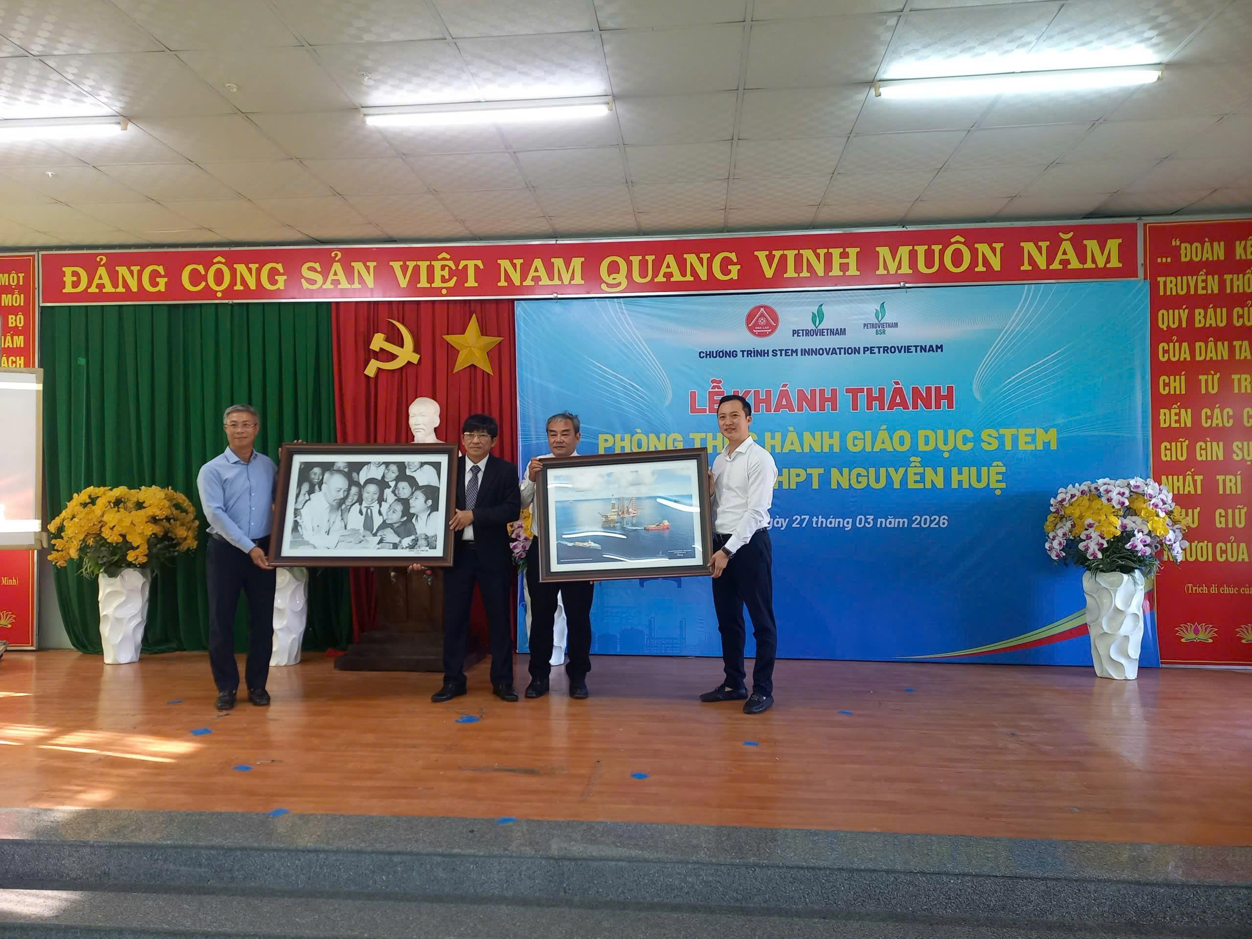 Chiều ngày 27/3/2026 , trường THPT Nguyễn Huệ đã chính thức cắt băng khánh thành Phòng thực hành giáo dục STEM. Với mong muốn mang đến cho học sinh trường THPT Nguyễn Huệ một môi trường thực hành hiện đại, tiệm cận với tiêu chuẩn quốc tế, nhà trường đã nhận được sự đồng hành vô cùng quý báu từ Tập đoàn Dầu khí Quốc gia Việt Nam (Petrovietnam), trực tiếp là Công ty Cổ phần Lọc hóa dầu Bình Sơn (BSR).
