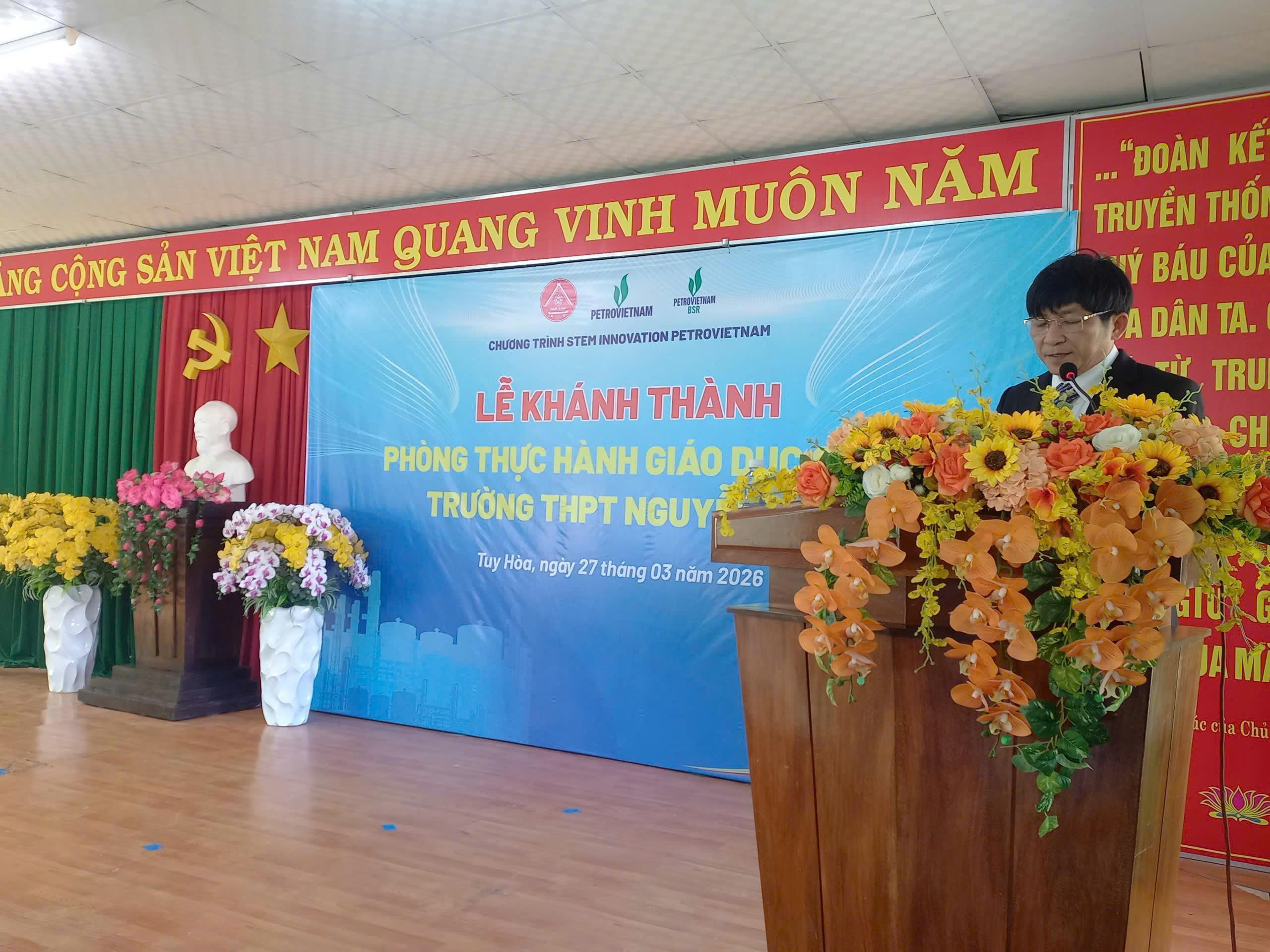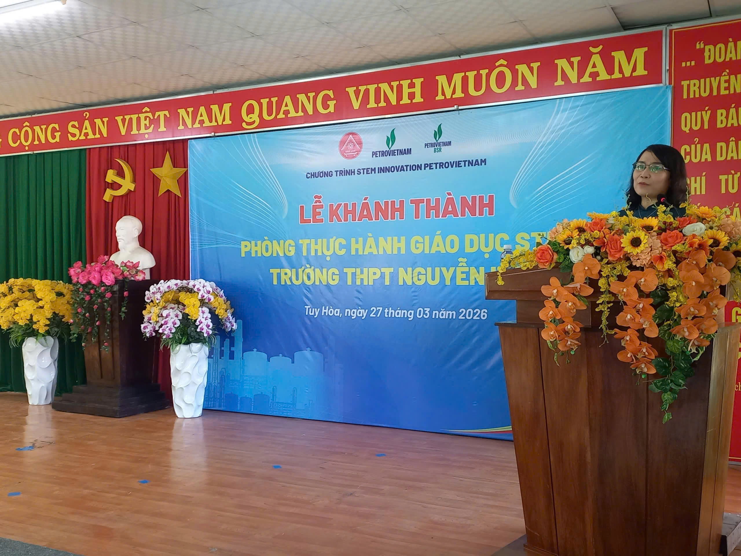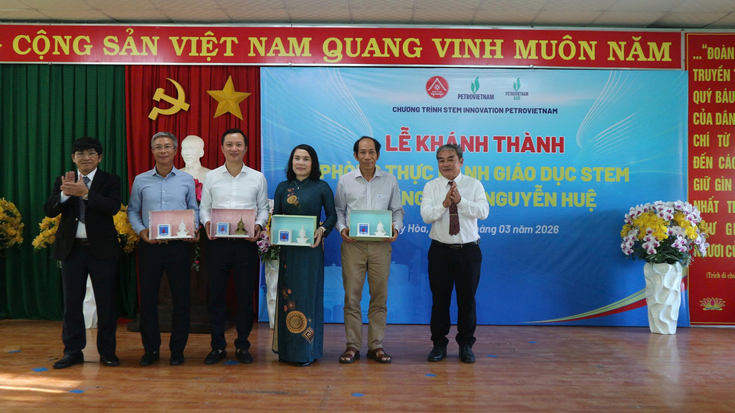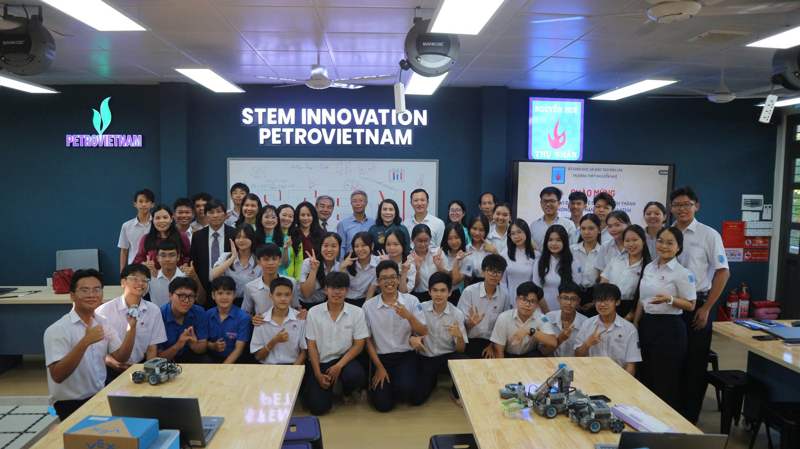 Chiều ngày 27/3/2026 , trường THPT Nguyễn Huệ đã chính thức cắt băng khánh thành Phòng thực hành giáo dục STEM. Với mong muốn mang đến cho học sinh trường THPT Nguyễn Huệ một môi trường thực hành hiện đại, tiệm cận với tiêu chuẩn quốc tế, nhà trường đã nhận được sự đồng hành vô cùng quý báu từ Tập đoàn Dầu khí Quốc gia Việt Nam (Petrovietnam), trực tiếp là Công ty Cổ phần Lọc hóa dầu Bình Sơn (BSR).