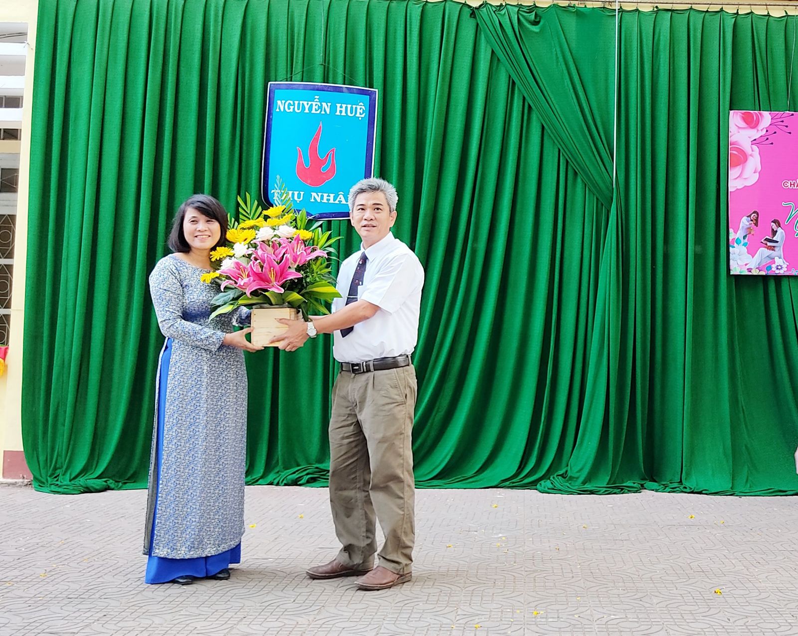 Tại buổi ngoại khóa, thầy Lê Văn Son bí thư Đảng bộ, Hiệu trưởng nhà trường đã tặng lãng hoa tươi thắm chúc mừng tới toàn thể nữ CBGV, NV và nữ sinh toàn trường, đồng thời thầy Hiệu trưởng cũng gửi lời chúc mừng và mong muốn các chị em trong toàn trường sẽ tiếp tục phát huy tính năng động, sáng tạo của phụ nữ thời hiện đại công nghệ.