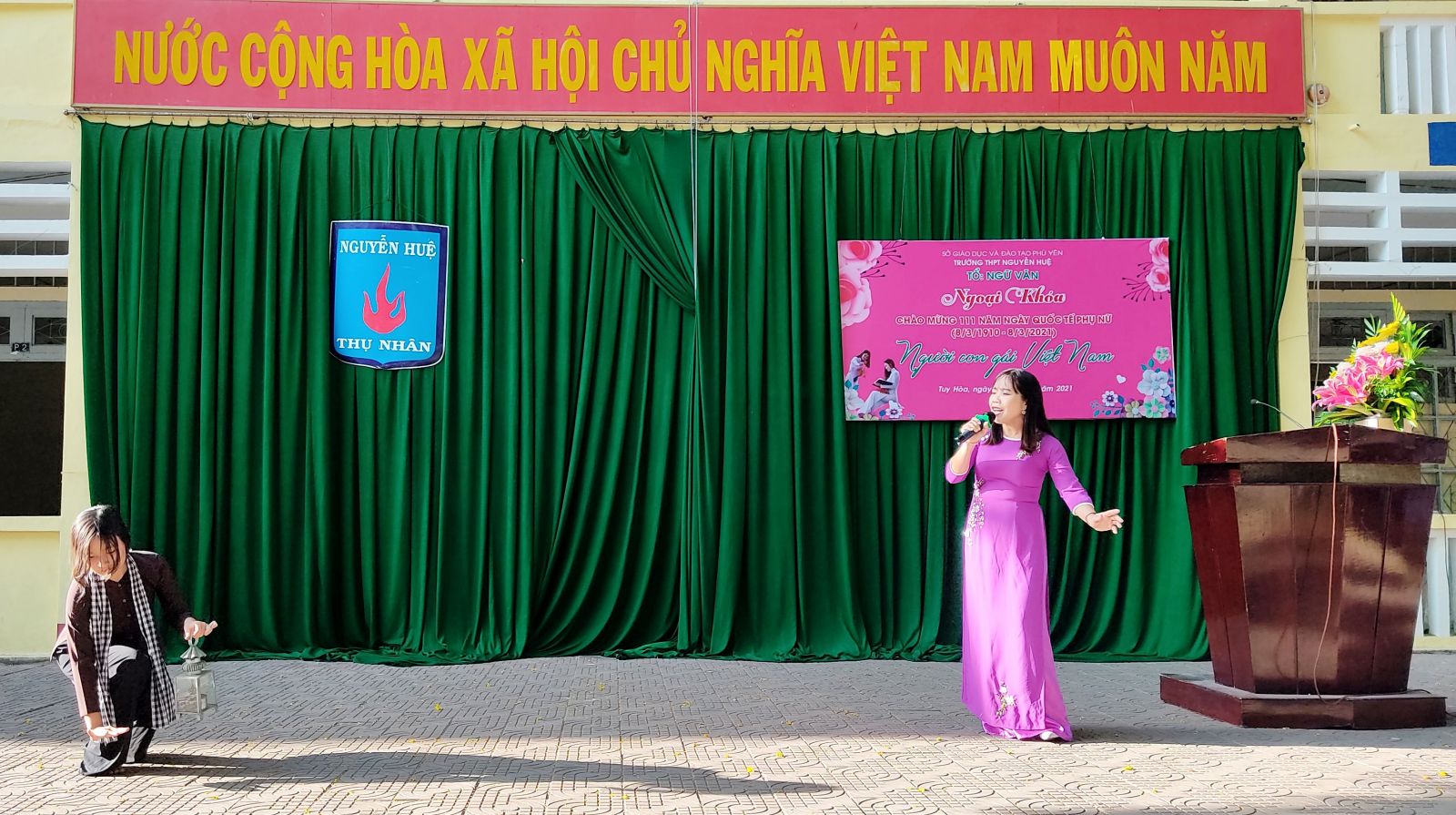 Thiết thực chào mừng kỷ niệm 111 năm ngày Quốc tế phụ nữ (08/3/1910 – 08/3/2021). Sáng ngày 08/3/2021, được sự đồng ý Ban giám hiệu trường THPT Nguyễn Huệ, tổ ngữ văn tổ chức ngoại khóa với chủ đề “ Người con gái Việt Nam” nhằm tôn vinh và lưu giữ những giá trị tốt đẹp của người phụ nữ nói chung và phụ nữ Việt Nam nói riêng.