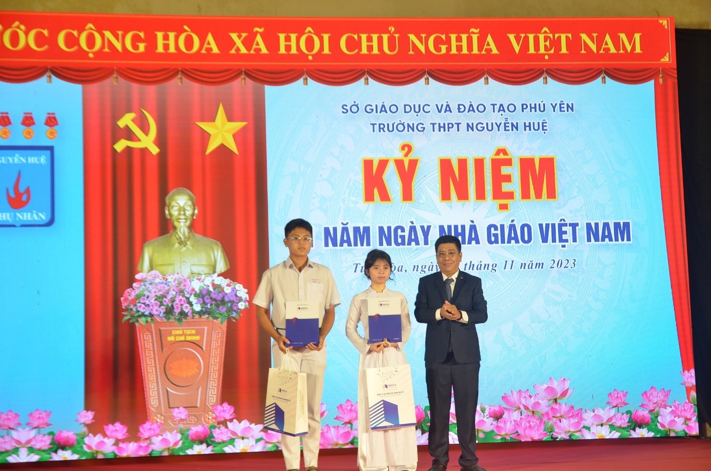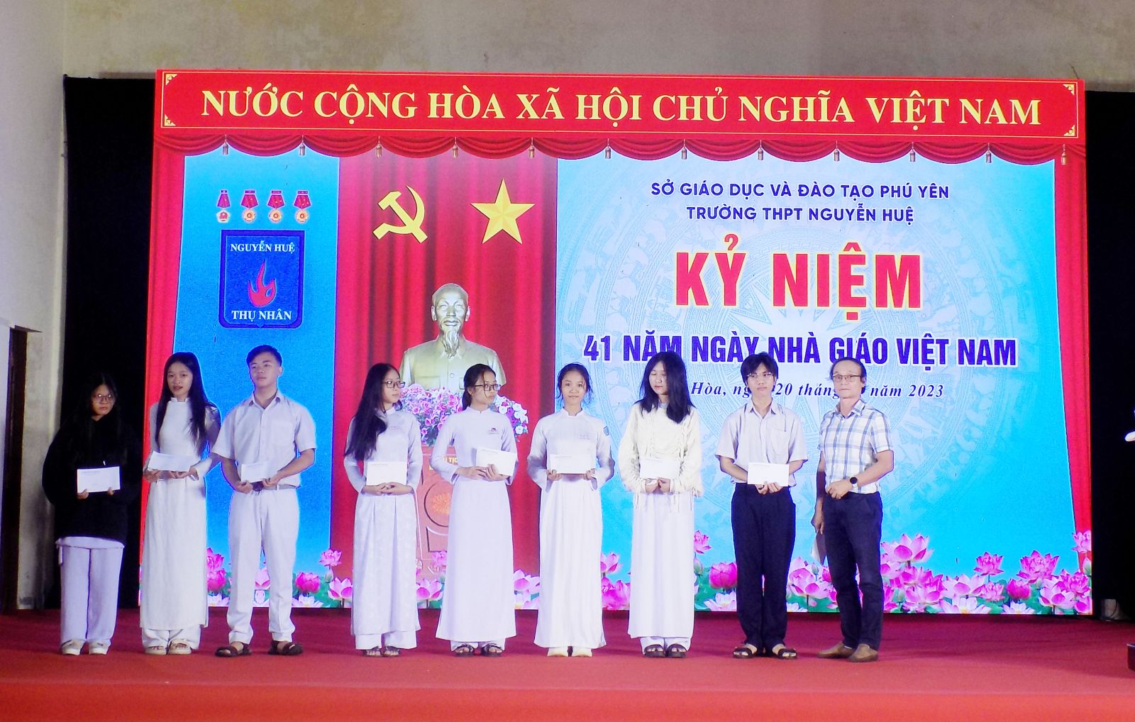 Nhằm tạo điều kiện tốt nhất, giúp đỡ và là nguồn động viên cho các em học sinh nỗ lực phấn đấu trong học tập. Nhân dịp này, Tập đoàn Đèo Cả đã trao tặng 60 triệu đồng cho quỹ Khuyến học – Khuyến tài của nhà trường và 10 triệu đồng cho 02 học sinh có hoàn cảnh đặc biệt khó khăn. Và cựu học sinh niên khóa 1990 – 1993 nhân kỷ niệm 30 ngày ra trường vào tháng 7/2023 đã tặng 15 triệu đồng cho quỹ khuyến học khuyến tài trong đó tặng học bổng cho CLB Tiếng Anh và CLB Khoa học kỹ thuật mỗi câu lạc bộ 5 triệu đồng nhằm động viên và khuyến khích phong trào học tập trong 2 câu lạc bộ. Đồng thời trao tặng 10 suất học bổng cho 10 em học sinh có hoàn cảnh khó khăn vươn lên trong học tập, mỗi suất trị giá 500,000đ.