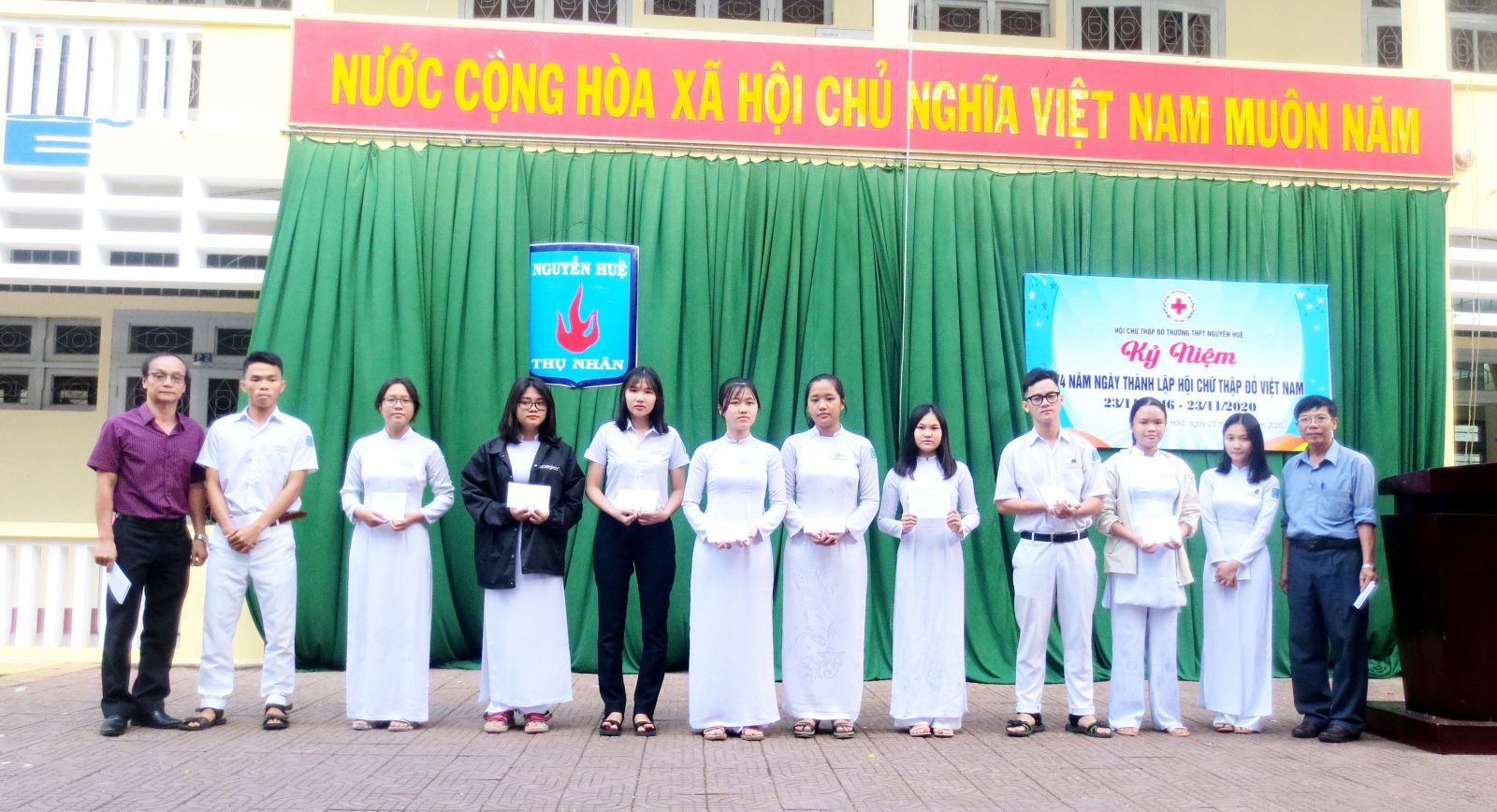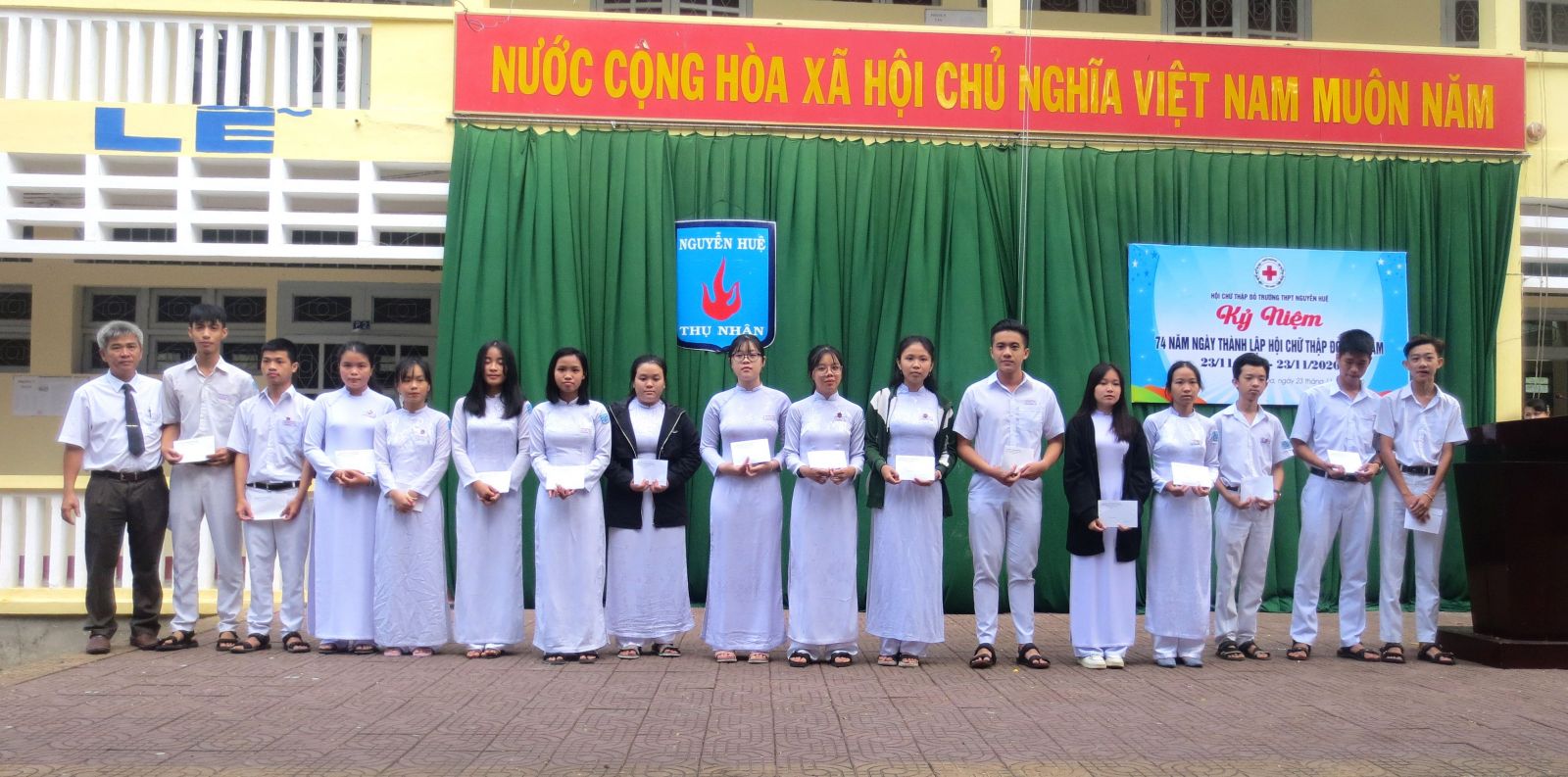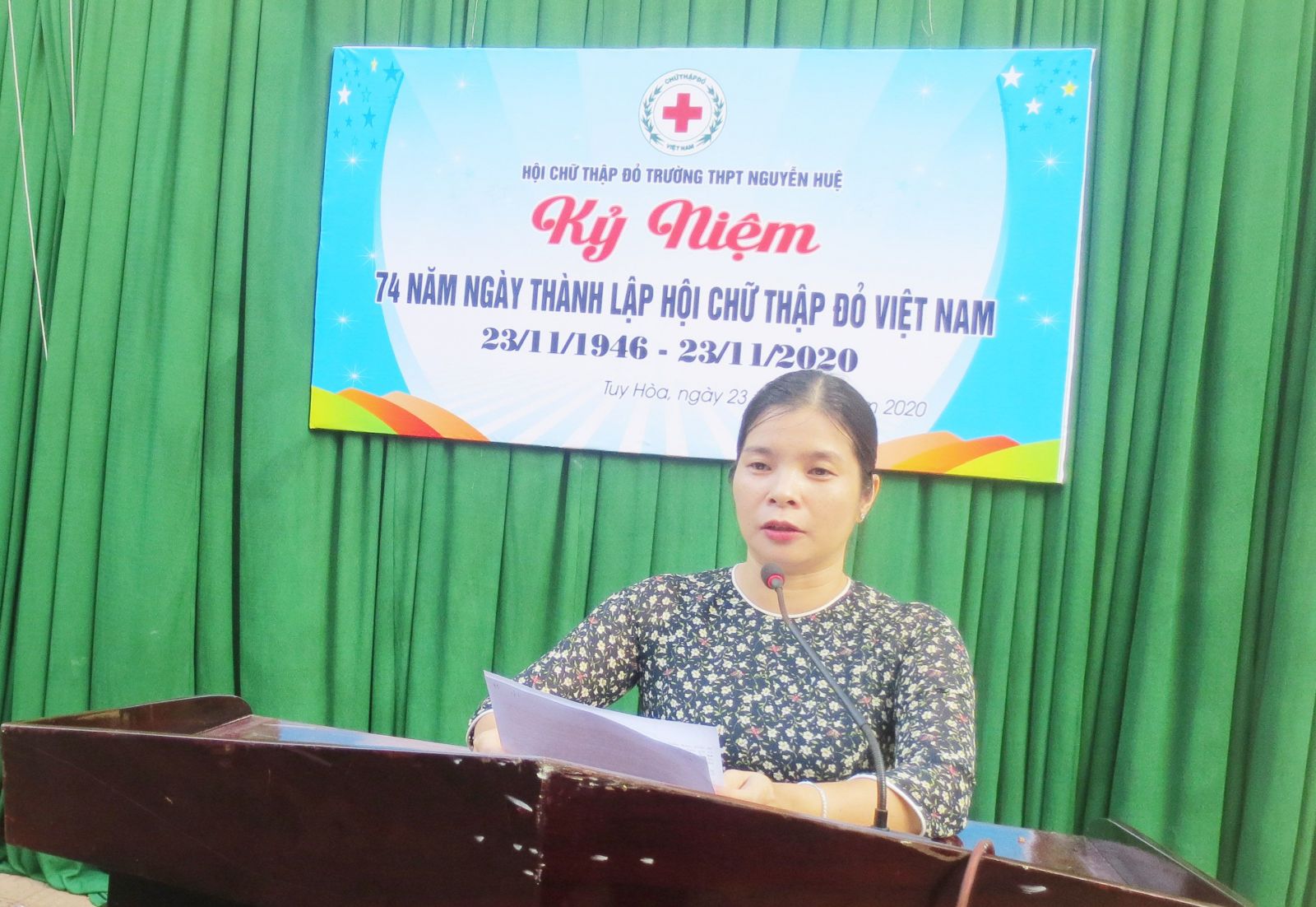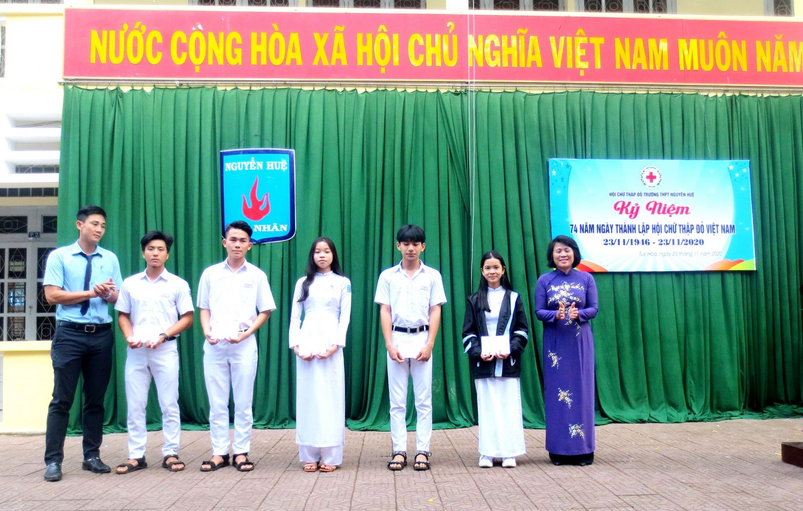 Nhằm nâng cao nhận thức, động viên, cổ vũ, khơi dậy niềm tự hào của các cán bộ, hội viên, tình nguyện viên, thanh thiếu niên chữ thập đỏ và nhân dân về truyền thống nhân ái của dân tộc và lịch sử vẻ vang của Hội chữ thập đỏ Việt Nam 74 năm qua và thực hiện chương trình công tác Hội và phong trào Chữ thập đỏ năm 2020 của Hội chữ tập đỏ thành phố Tuy Hoà, sáng ngày 23 tháng 11 năm 2020 Hội chữ thập đỏ trường THPT Nguyễn Huệ đã tổ chức Tuyên truyền Kỷ niệm 74 năm Ngày thành lập Hội chữ thập đỏ Việt Nam (23/11/1946 – 23/11/2020).