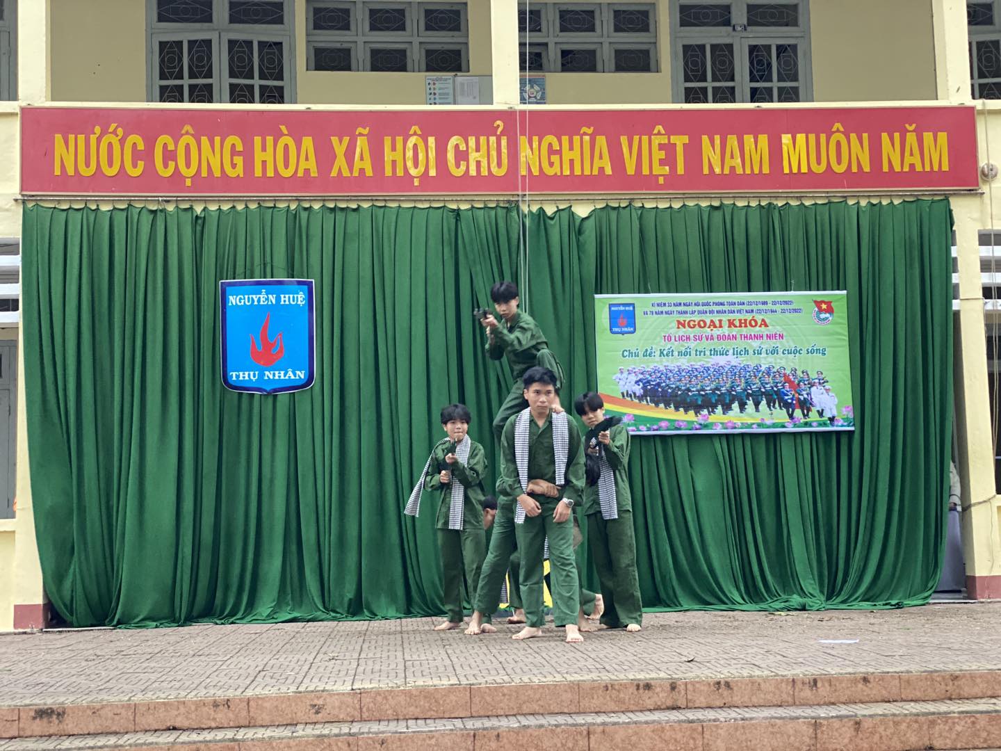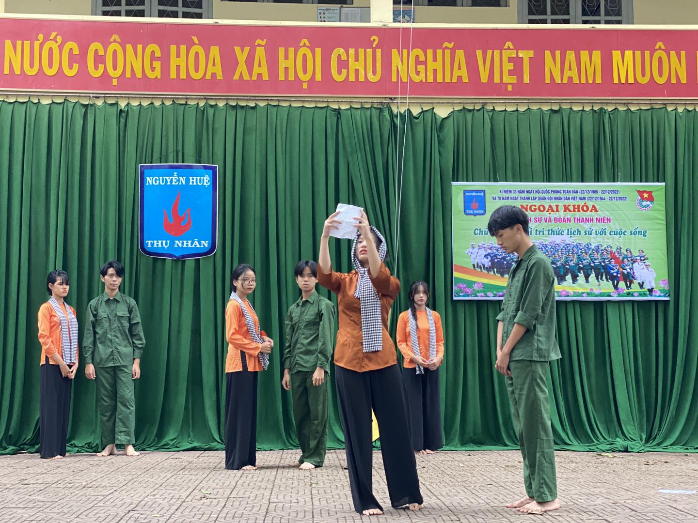 Ngày 19/12/2022, Đoàn trường THPT Nguyễn Huệ phối hợp với Tổ Lịch Sử tổ chức chương trình Ngoại khoá với chủ đề “Kết nối tri thức Lịch Sử với cuộc sống” nhân kỷ niệm 33 năm Ngày hội Quốc phòng Toàn dân (22/12/1989 – 22/12/2022) và kỷ niệm 78 năm ngày Quân đội Nhân dân Việt Nam (22/12/1944 – 22/12/2022).