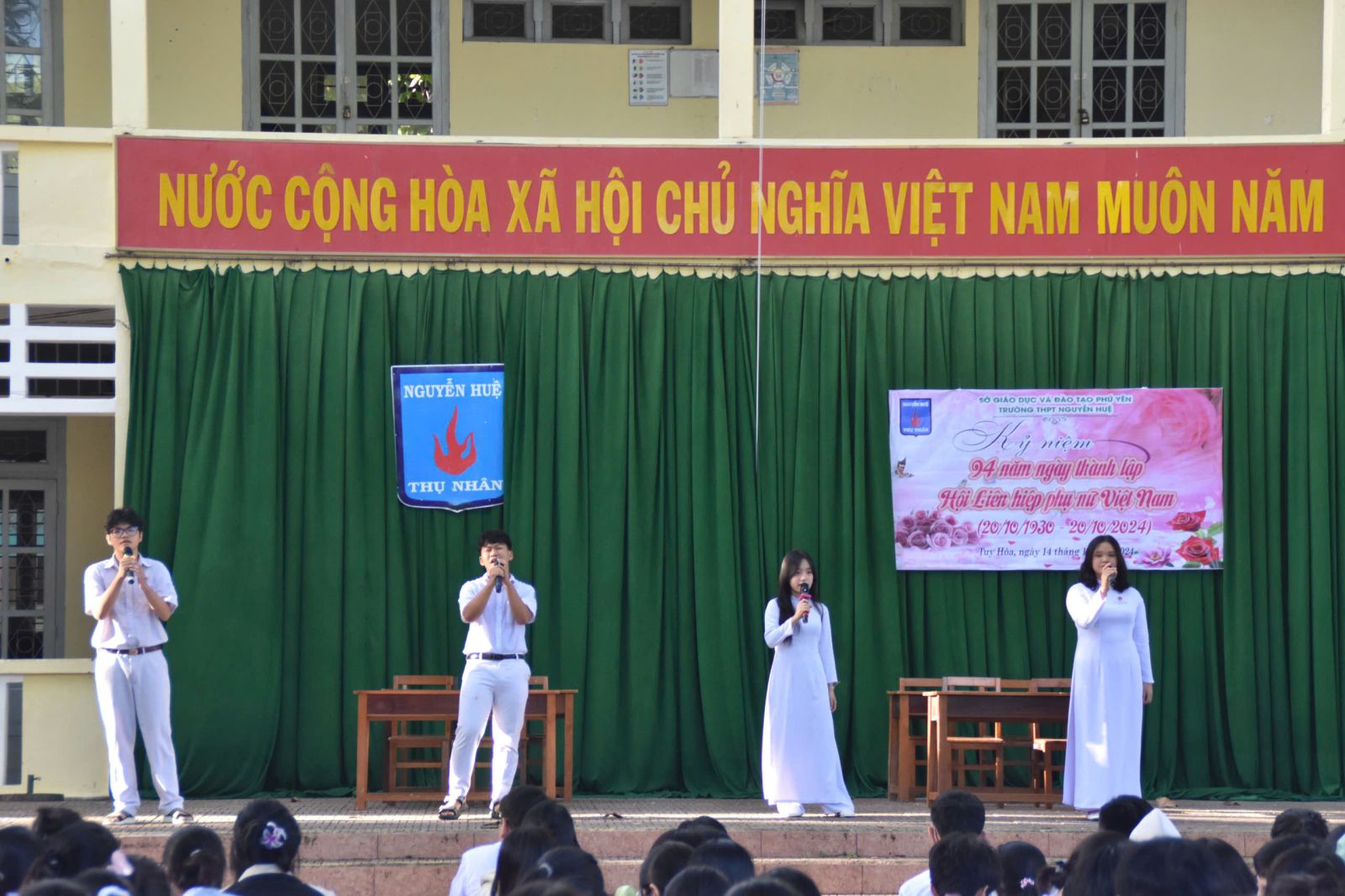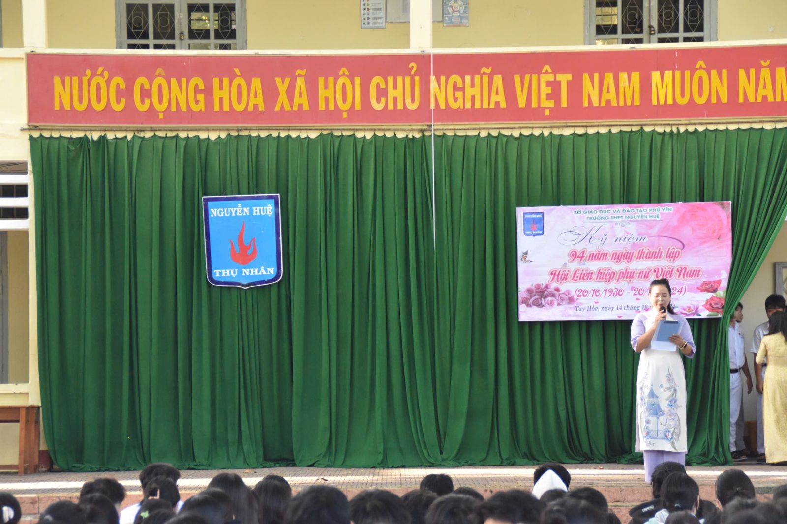 Nhân kỷ niệm 94 năm Ngày thành lập Hội Liên hiệp Phụ nữ Việt Nam (20/10/1930- 20/10/2024), sáng 14/10/2024, Ban Vì sự tiến bộ của phụ nữ trường THPT Nguyễn Huệ phối hợp với nhà trường, Đoàn thanh niên tổ chức chương trình Kỷ niệm 94 năm ngày thành lập Hội Liên hiệp Phụ nữ Việt Nam.