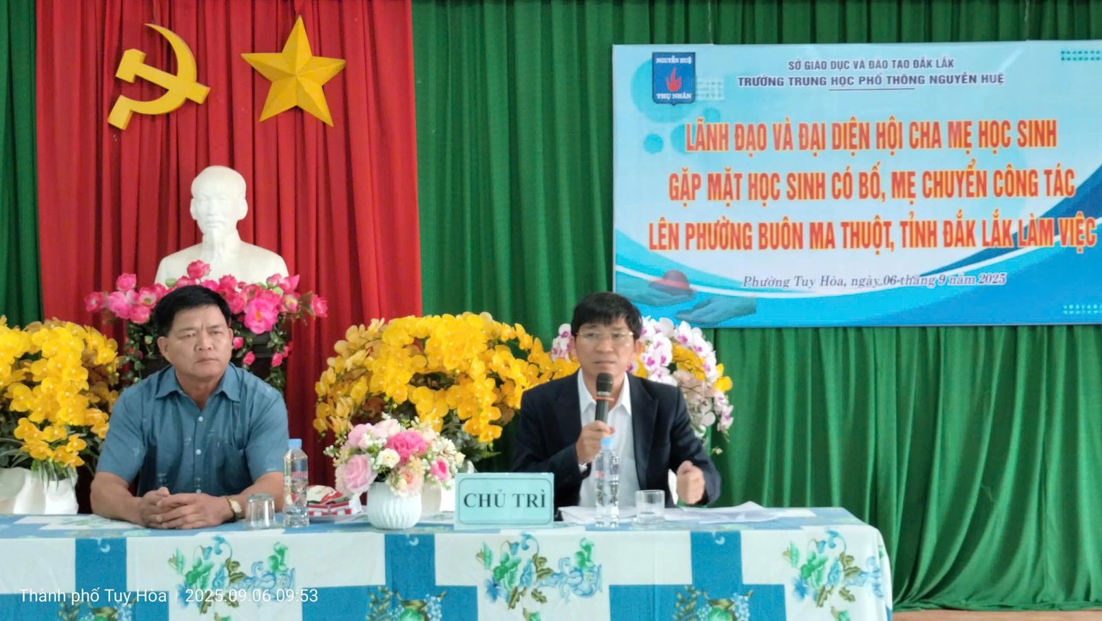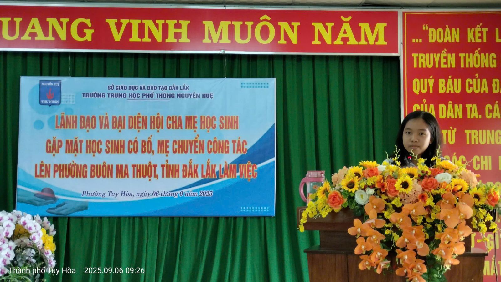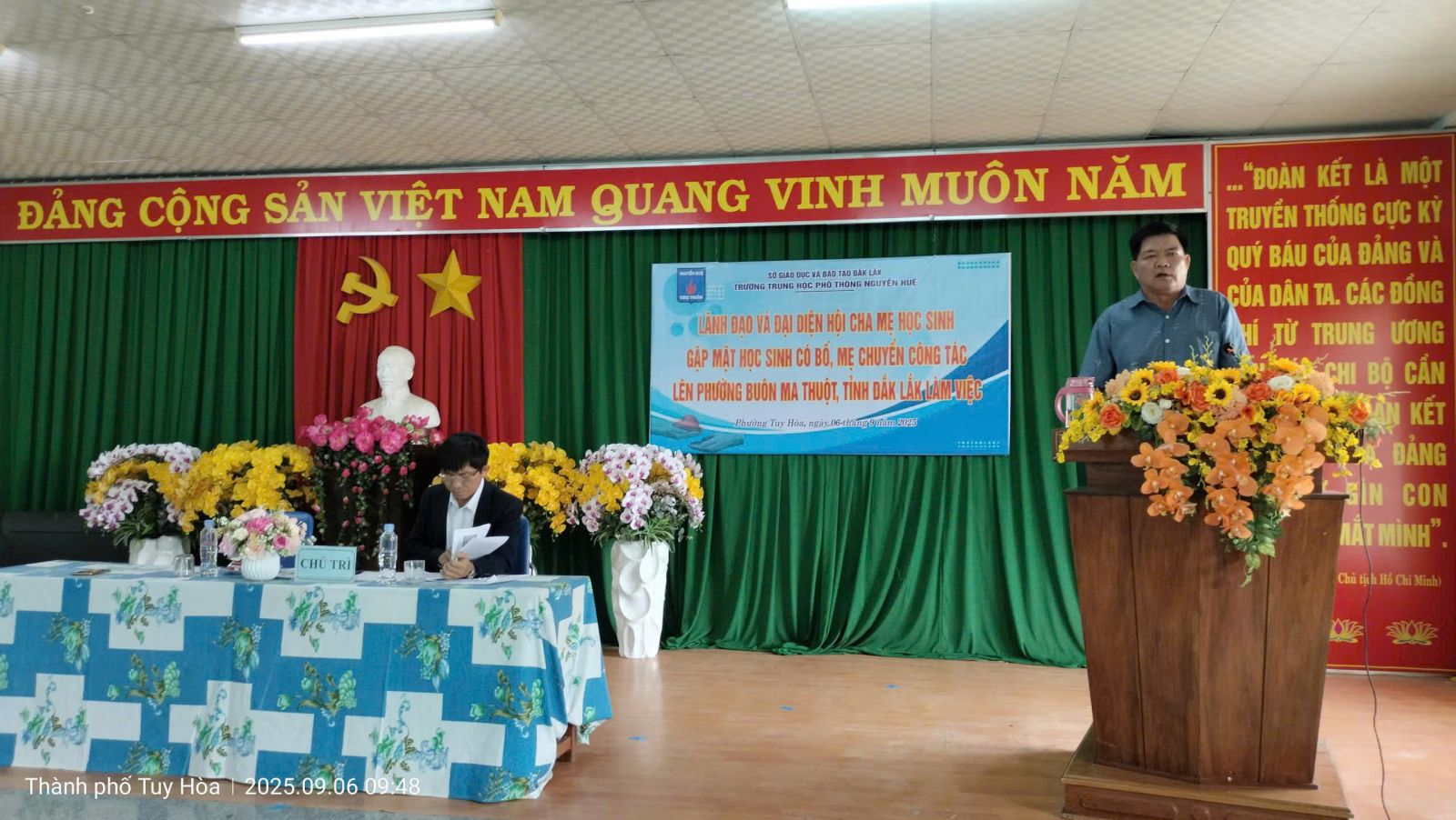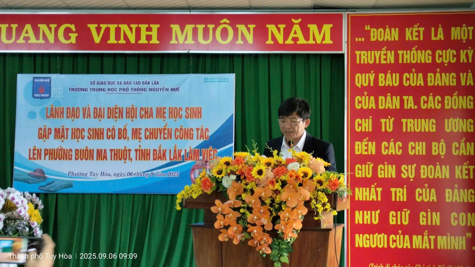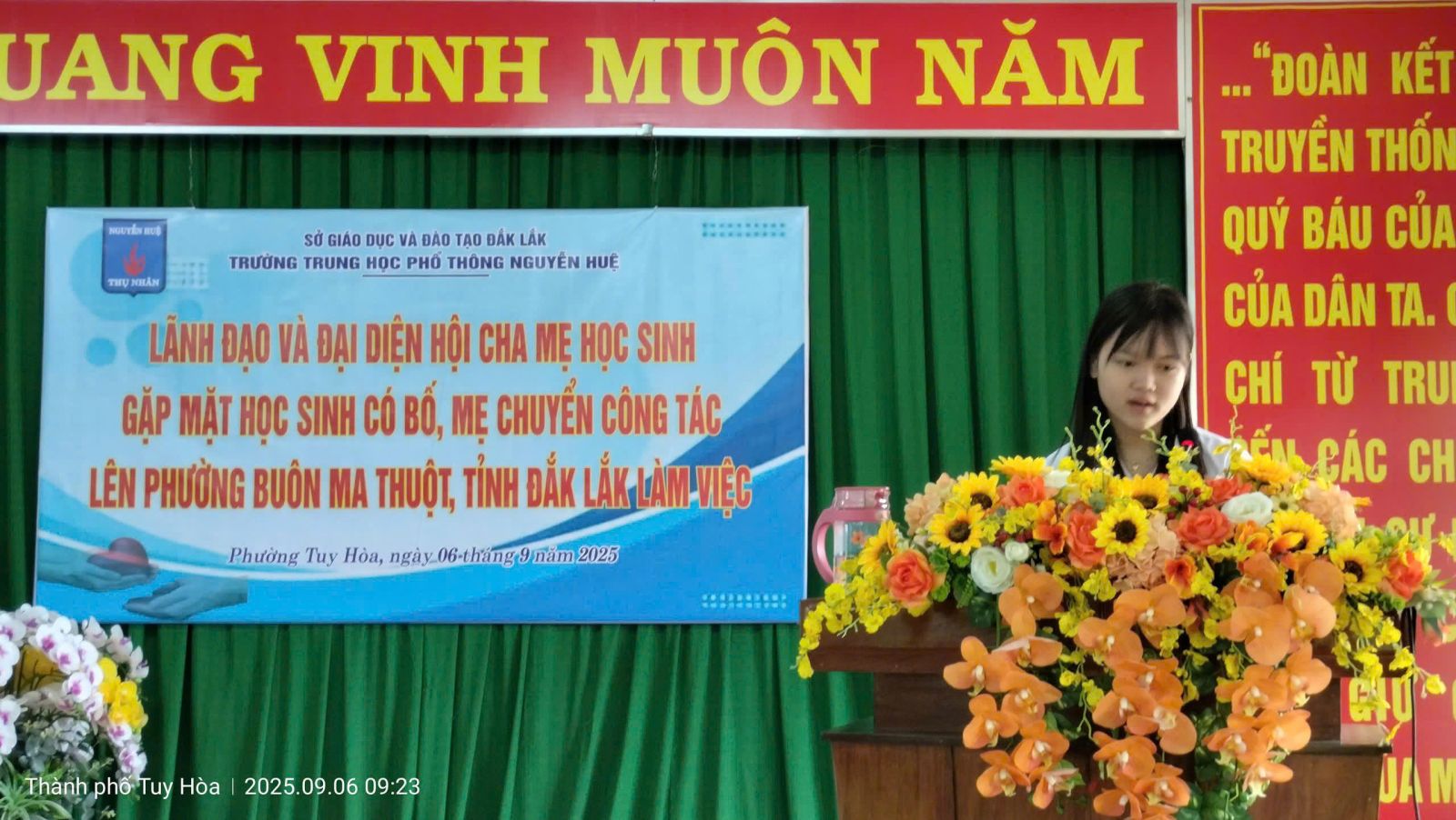 Sáng này 6/9/2025, lãnh đạo và đại diện hội cha mẹ học sinh trường THPT Nguyễn Huệ đã có buổi gặp mặt thân tình với những học sinh có bố, mẹ chuyển công tác lên phường Buôn Ma Thuột – Đắk Lắk làm việc sau thời gian thực hiện sáp nhập tỉnh.