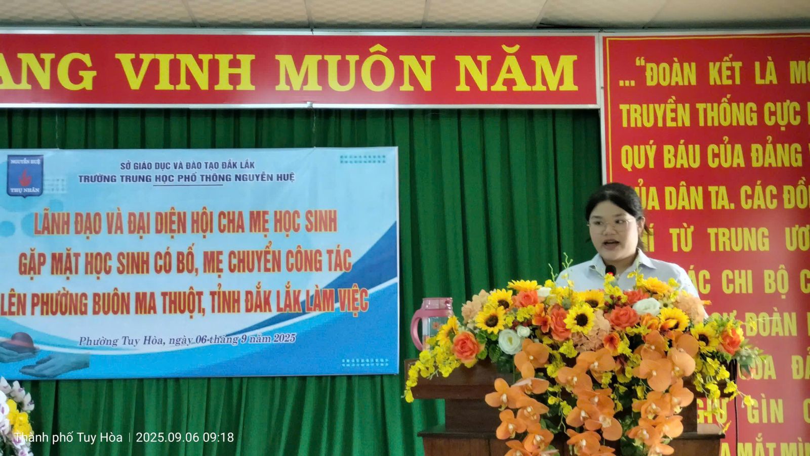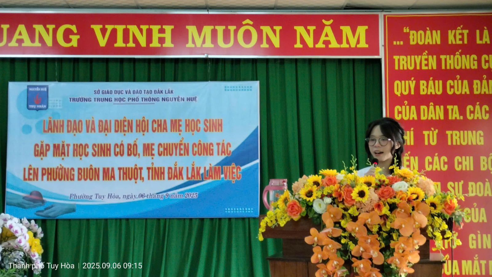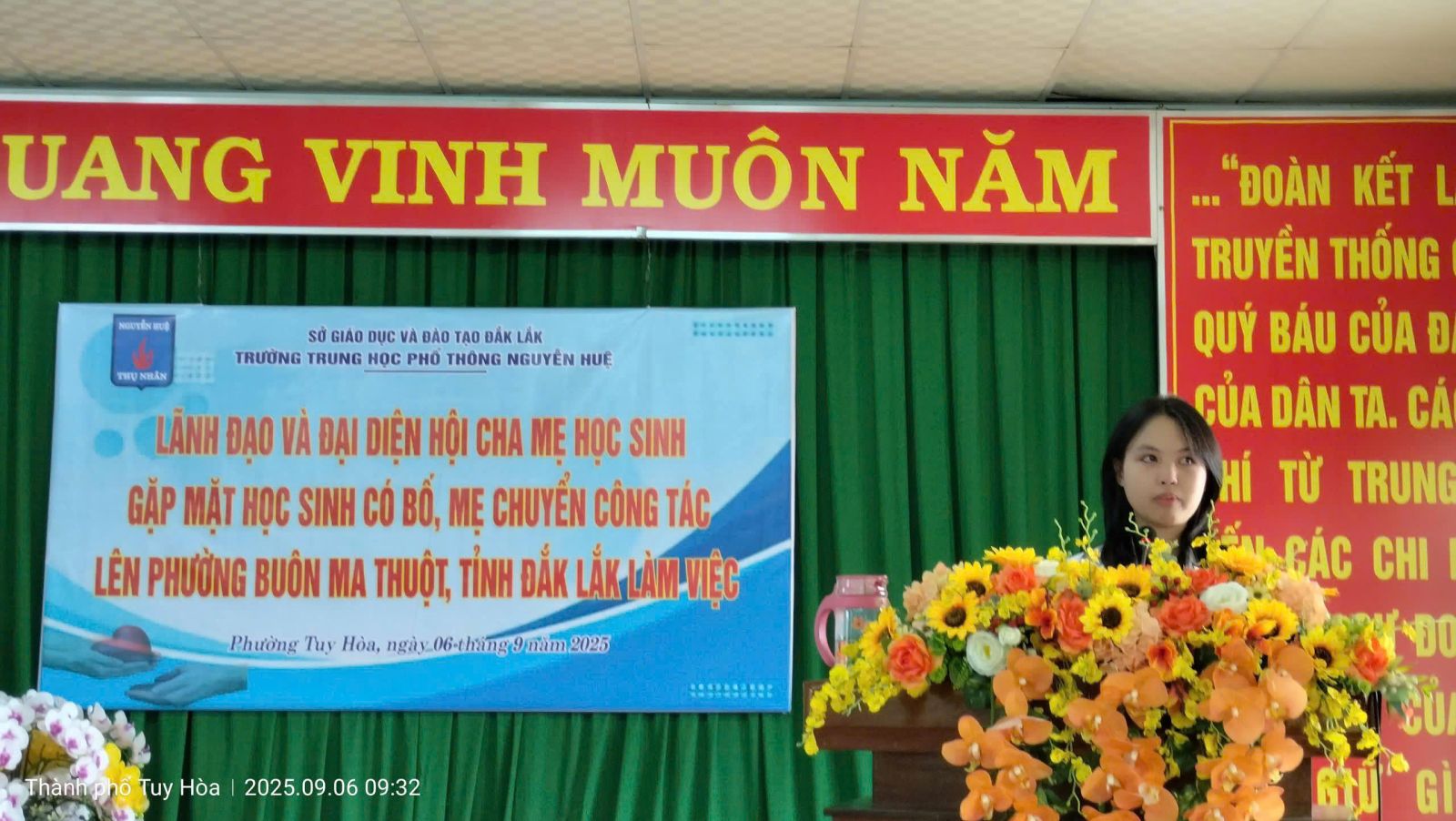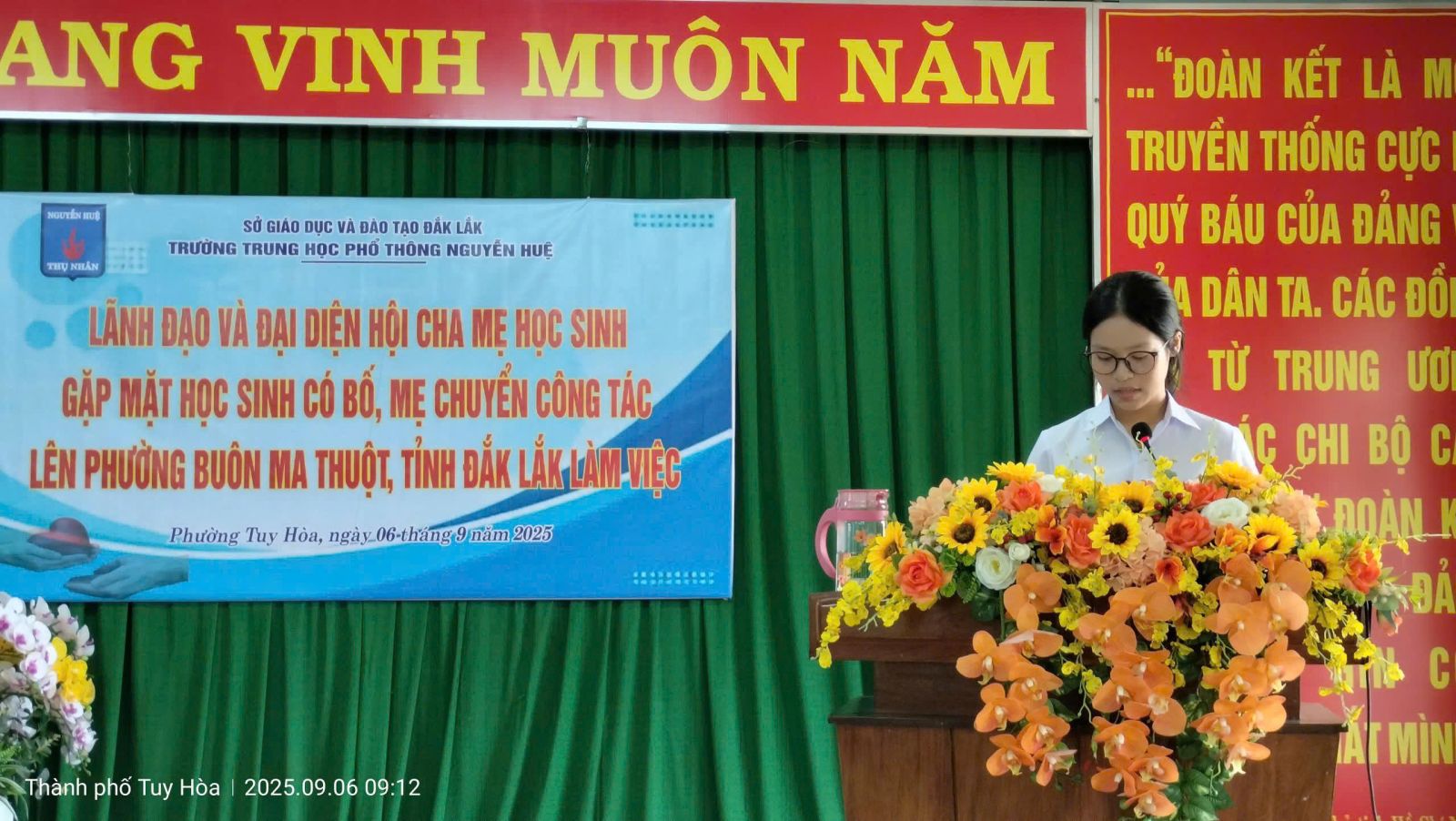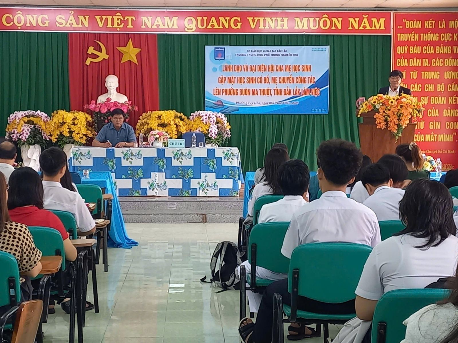 Lãnh đạo và đại diện Hội cha mẹ học sinh trường THPT Nguyễn Huệ gặp mặt học sinh có bố, mẹ chuyển công tác lên phường Buôn Ma Thuột – Đắk Lắk làm việc
