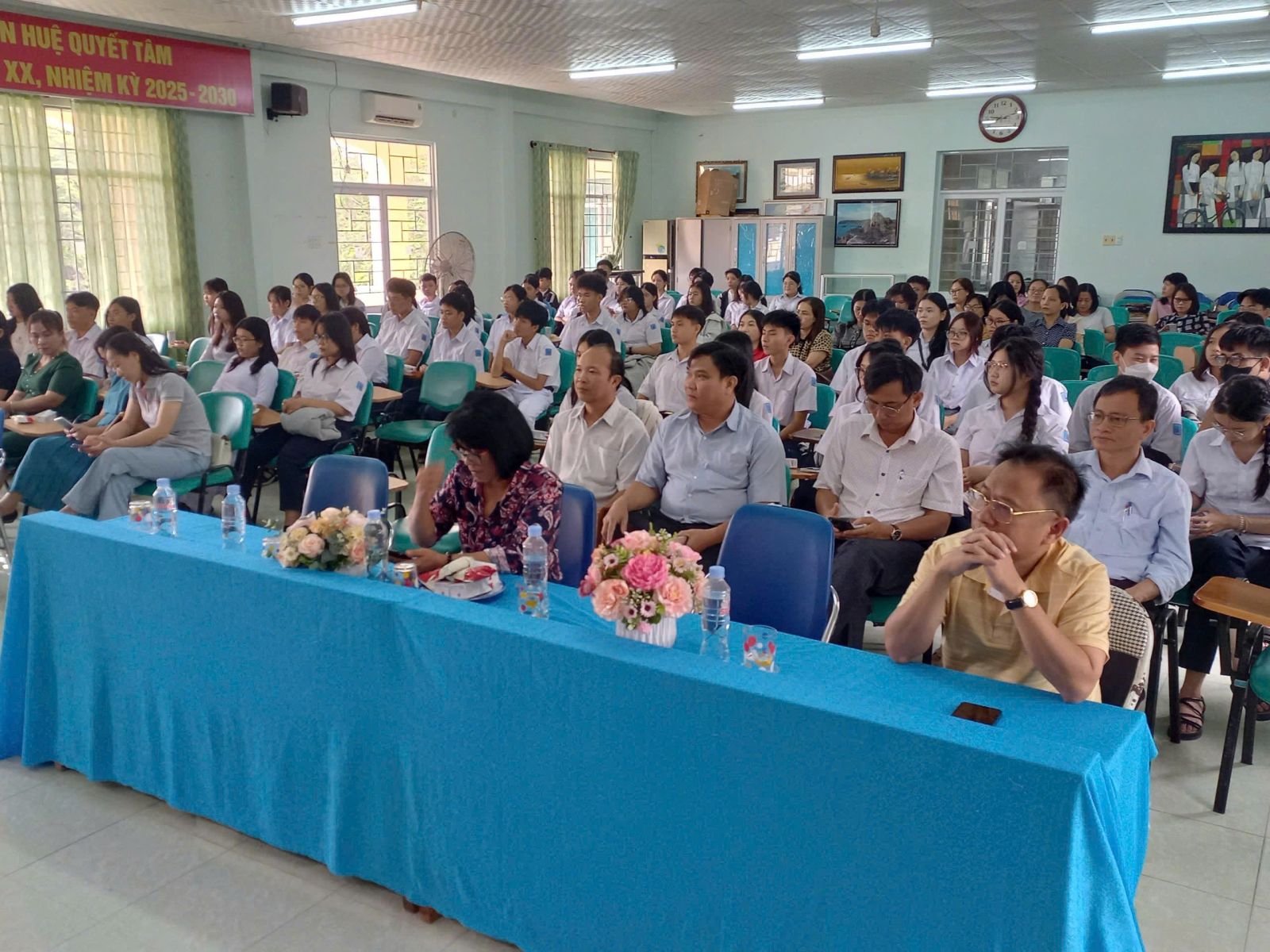 Thầy Lê Thành Phương – Bí thư Đảng ủy – Hiệu trưởng nhà trường phát biểu tại buổi gặp mặt học sinh.