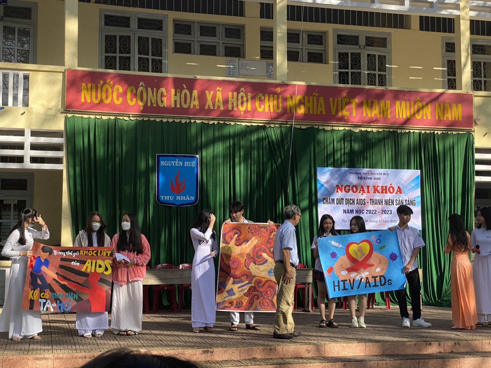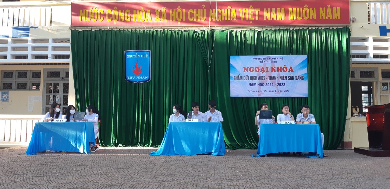 Xác định được những vấn đề chung về giáo dục phòng, chống nhiễm HIV/AIDS trong trường học. Được sự nhất trí của Đảng ủy, BGH trường. Sáng ngày 28/11/2022 tổ Sinh học trường THPT Nguyễn Huệ tổ chức buổi ngoại khóa năm học 2022-2023 với chủ đề “ Chấm dứt dịch AIDS – Thanh niên sẵn sàng”.