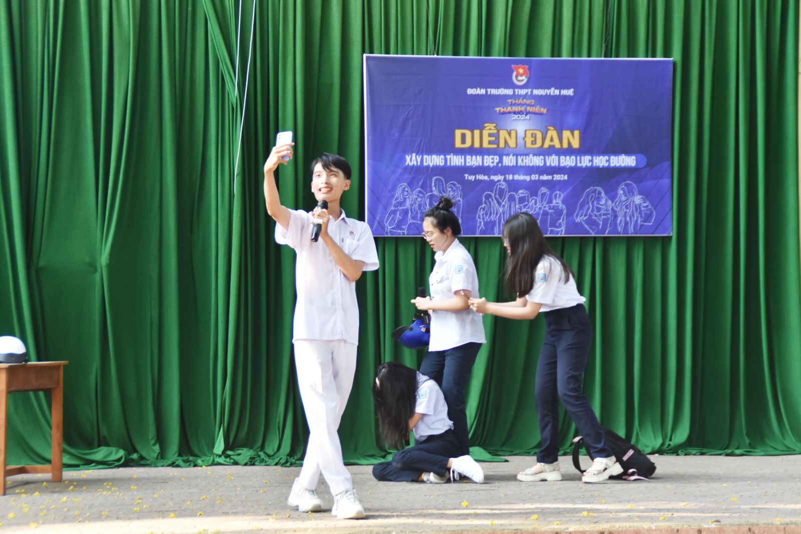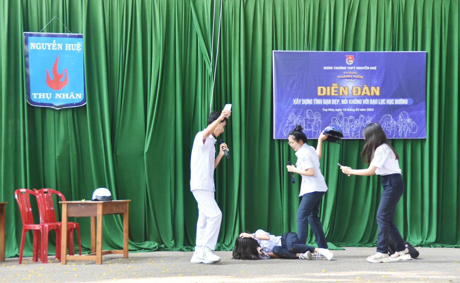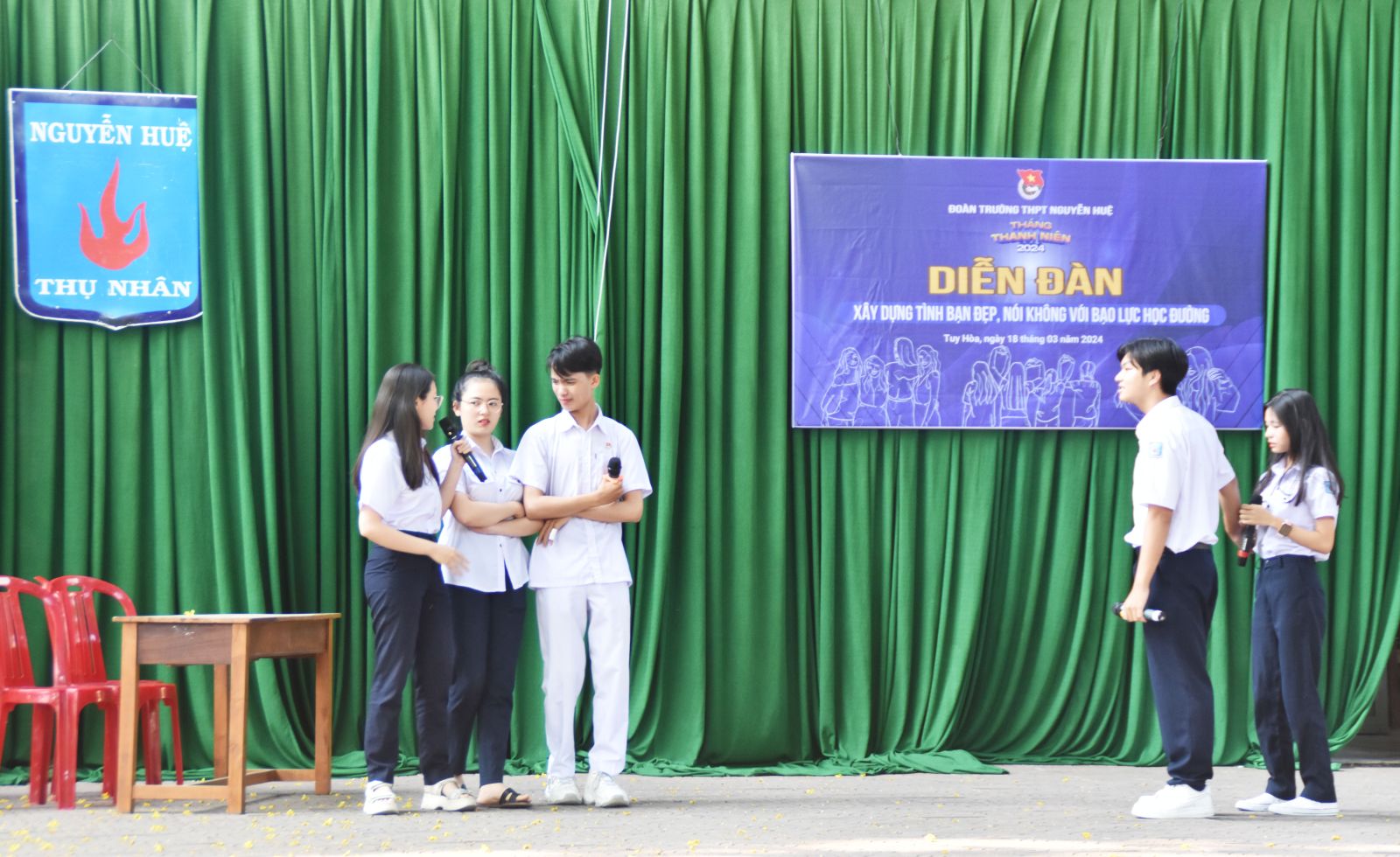 Tại Diễn đàn các đoàn viên, thanh niên triển khai 2 nội dung: Tiểu phẩm tuyên truyền về nạn bạo lực học đường hiện nay và chia sẻ quan điểm, tìm hiểu kiến thức về bạo lực học đường và xây dựng tình bạn đẹp.