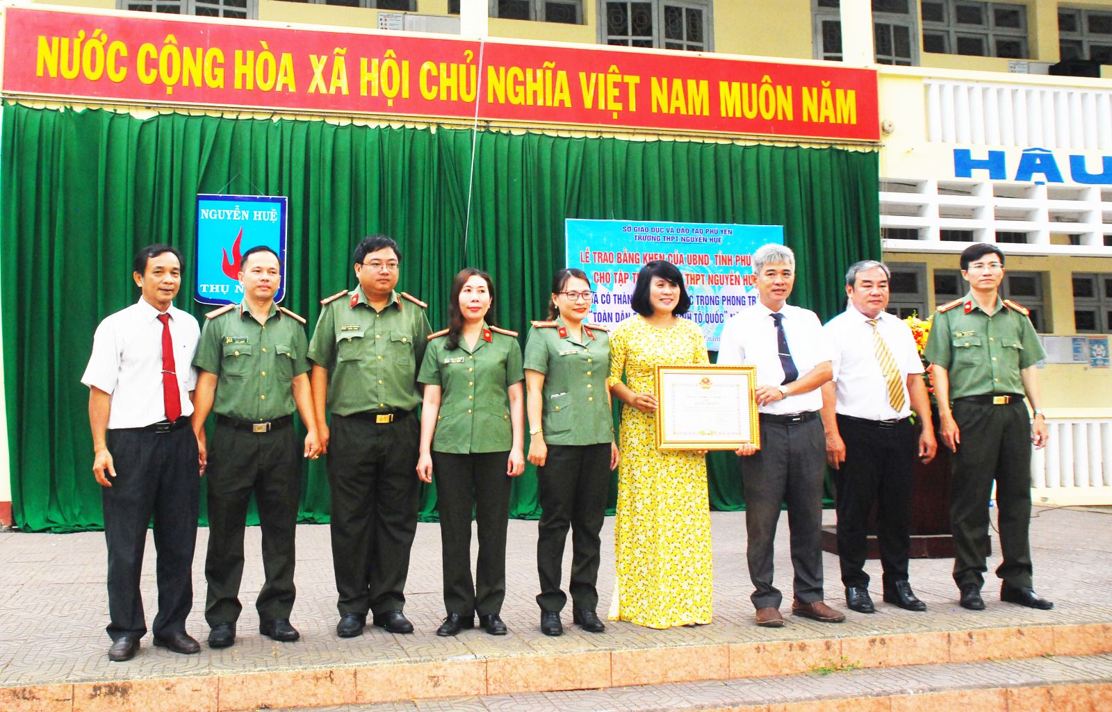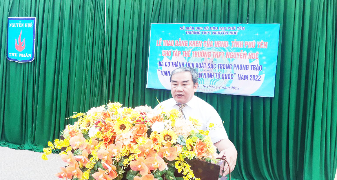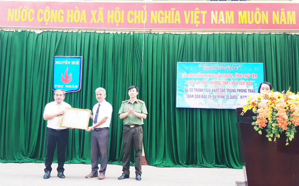 Trường THPT Nguyễn Huệ nhận bằng khen của UBND tỉnh Phú Yên về thành tích xuất sắc trong phong trào toàn dân bảo vệ an ninh Tổ quốc năm 2022.