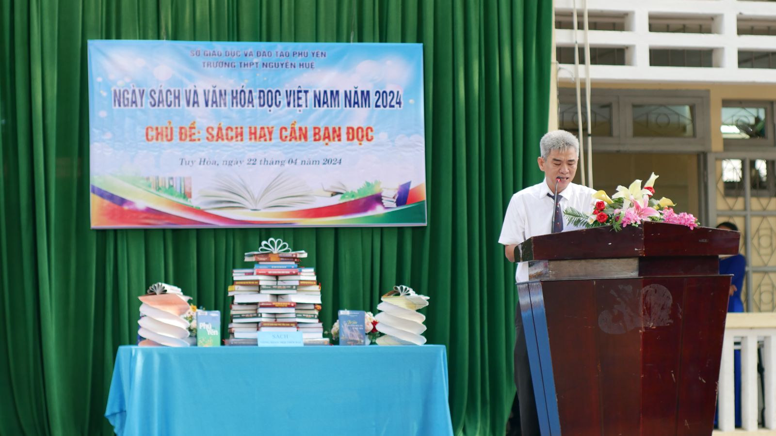 Tại buổi lễ, thầy Lê Văn Son, bí thư Đảng ủy, hiệu trưởng nhà trường có đôi lời phát biểu về ý nghĩa chương trình, khẳng định vị trí, vai trò và tầm quan trọng của sách đối với việc nâng cao kiến thức, kĩ năng, phát triển tư duy, giáo dục và rèn luyện nhân cách con người. Thầy cũng kêu gọi thầy cô và học sinh toàn trường phát triển, lan tỏa hơn nữa phong trào đọc sách, văn hóa đọc trong nhà trường.