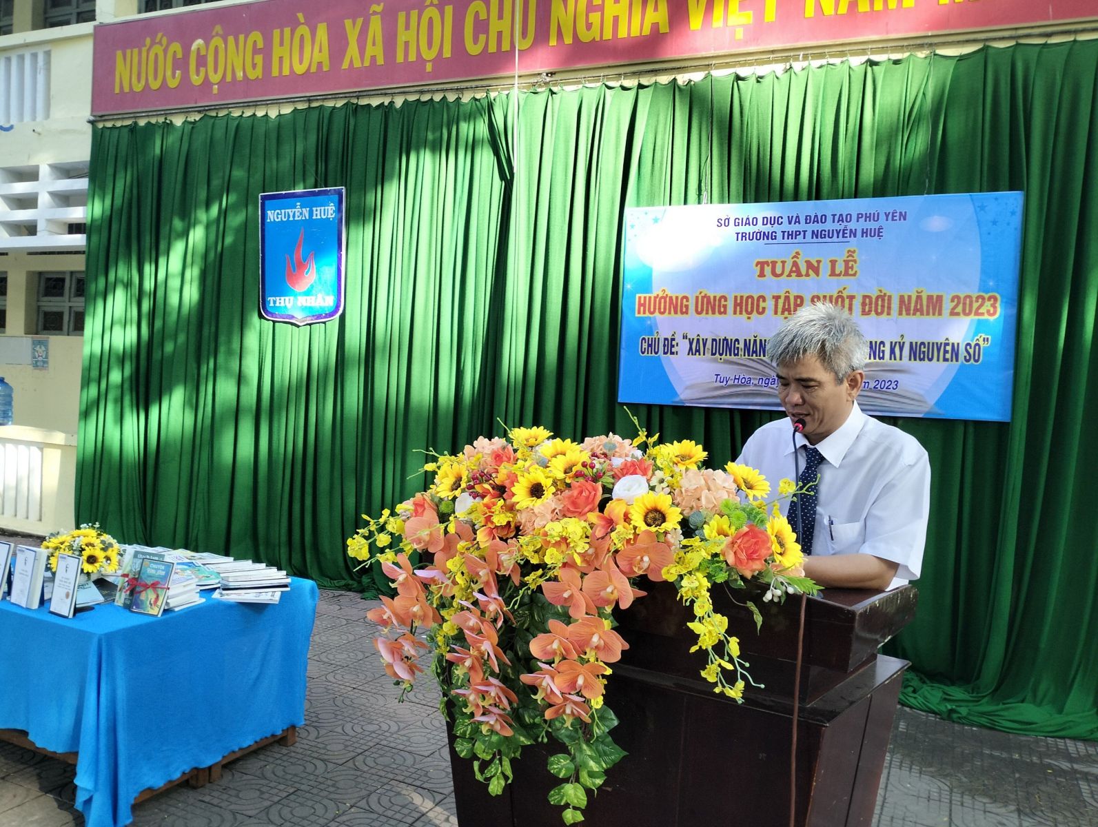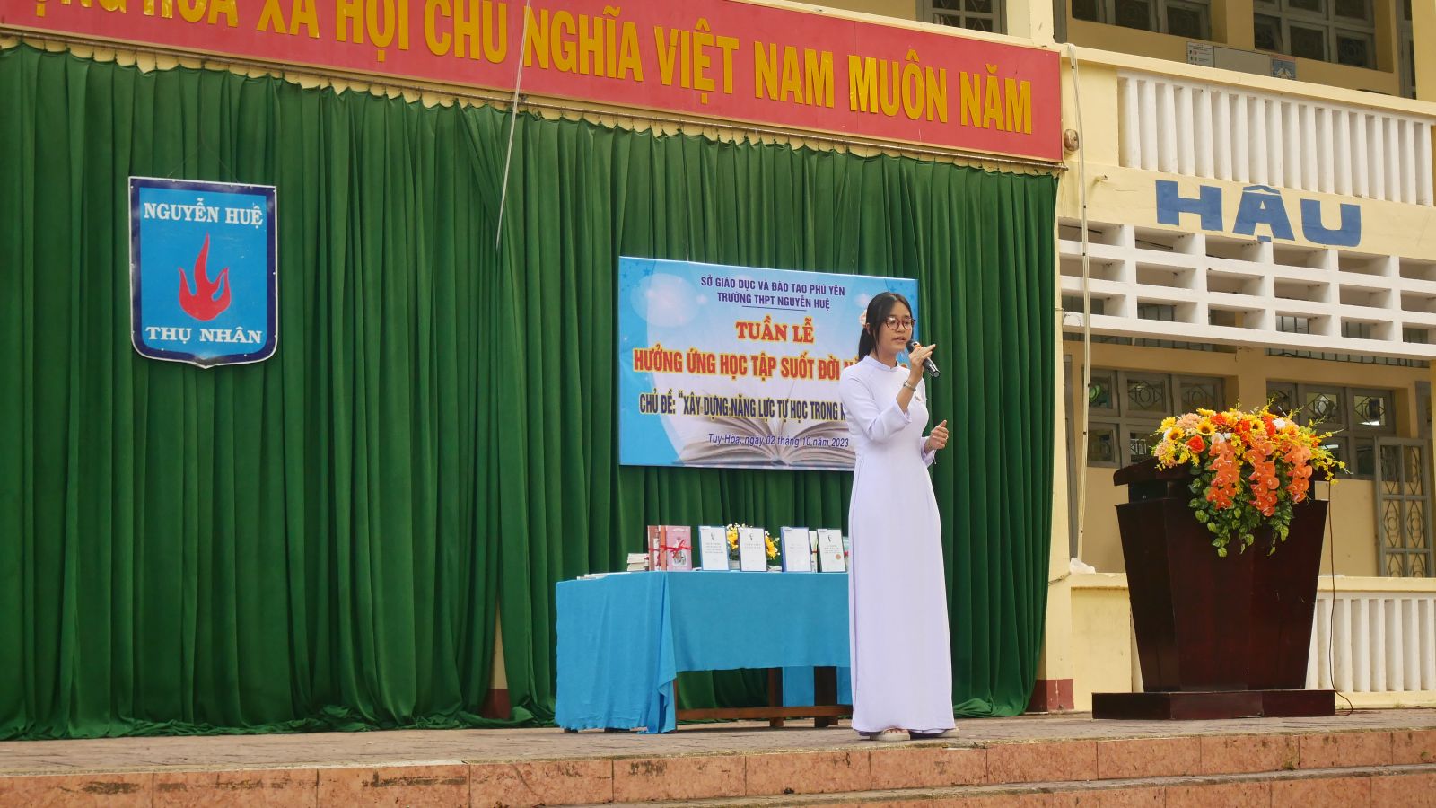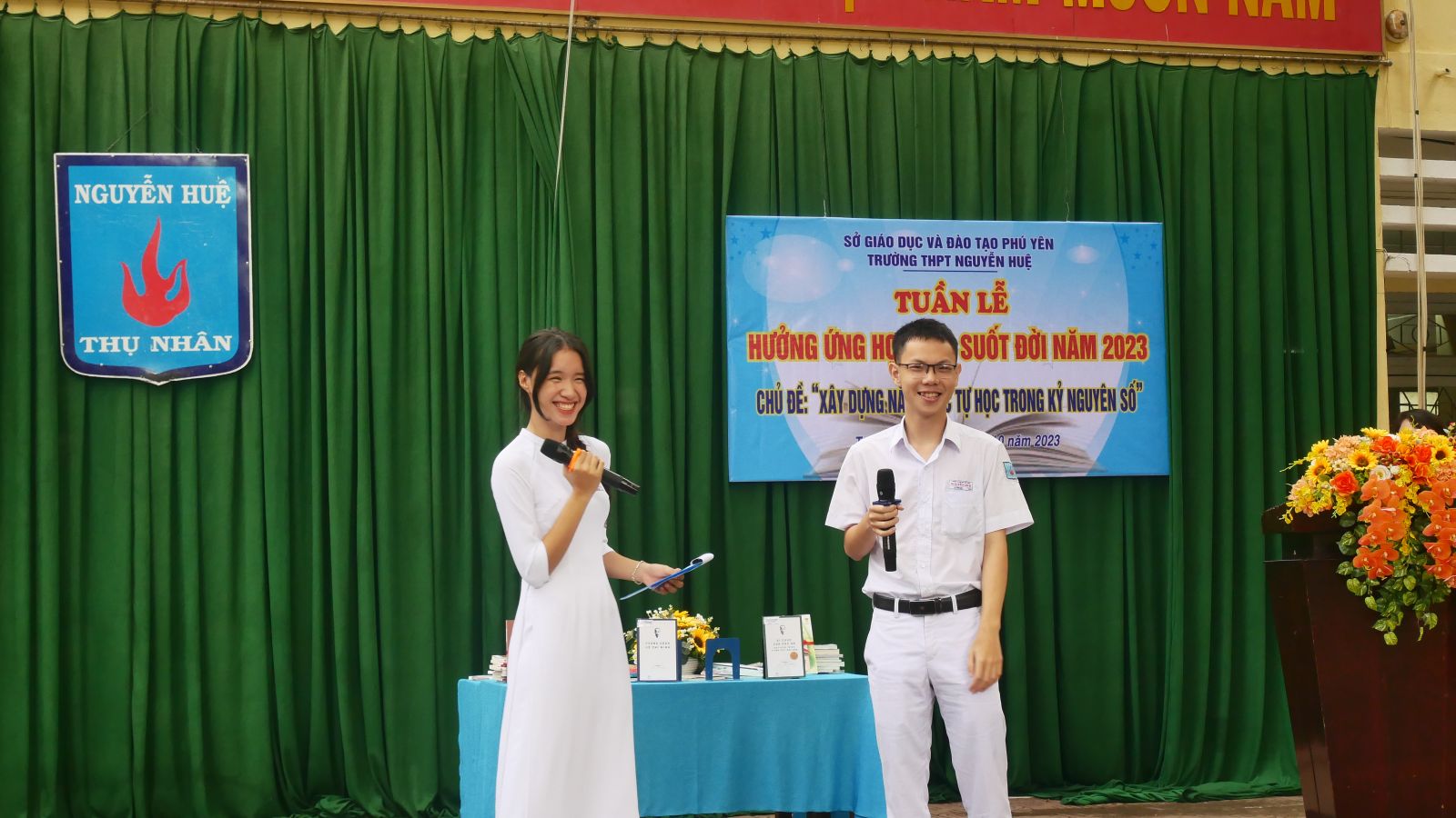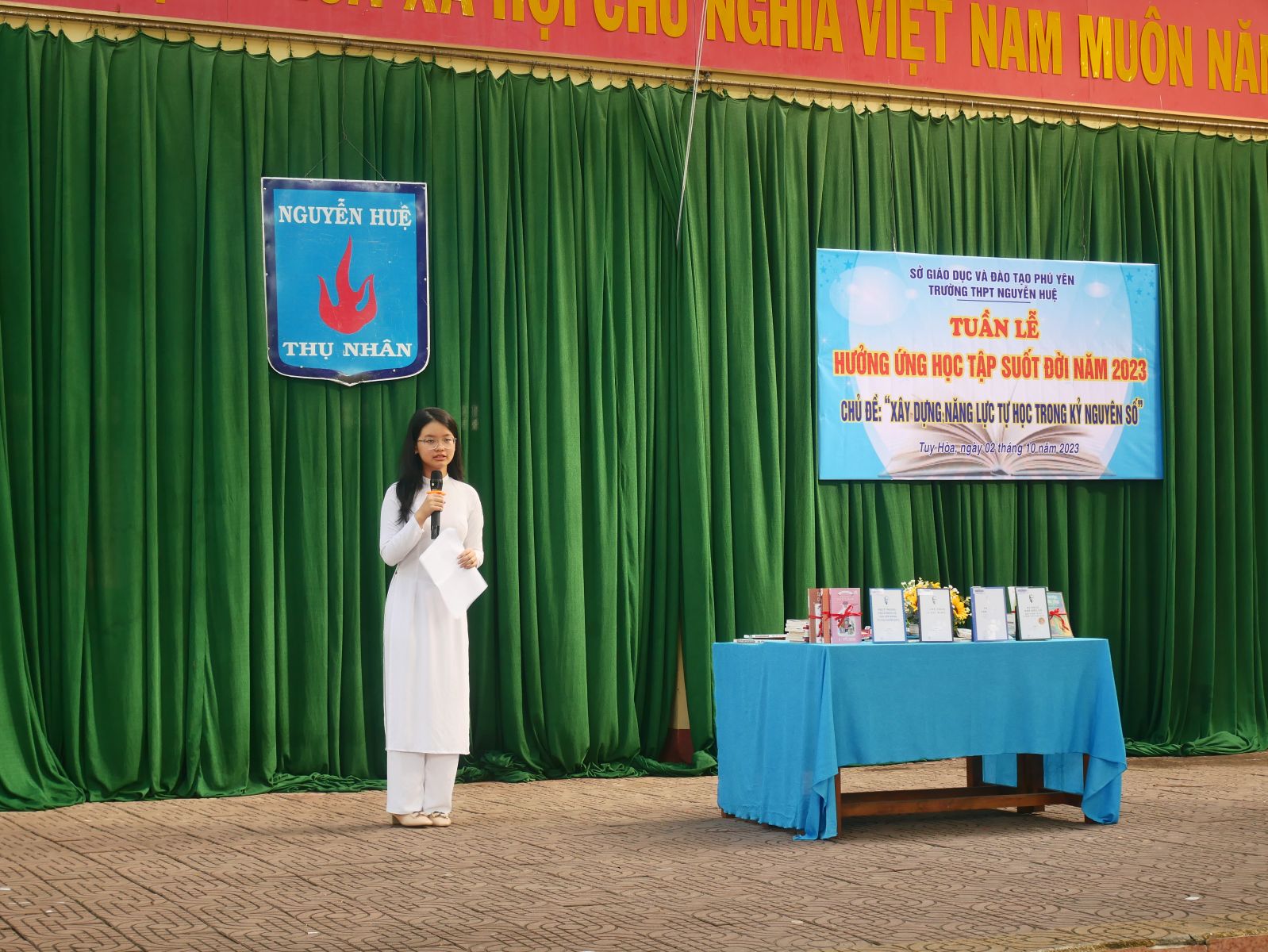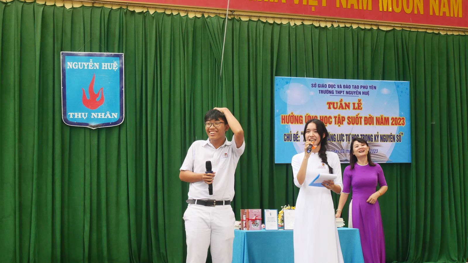 Tại buổi lễ, thầy Lê Văn Son, Bí thư Đảng bộ, hiệu trưởng nhà trường đã phát động tuần lễ hưởng ứng học tập suốt đời, kêu gọi toàn thể giáo viên, học sinh nhà trường nâng cao hơn nữa tinh thần tự học, làm chủ tri thức đặc biệt trong thời đại công nghệ thông tin rộng mở như hiện nay. Nhân dịp này, Câu lạc bộ Tôi đọc sách của trường cũng phối hợp với thư viện giới thiệu bộ sách “Di sản Hồ Chí Minh” do NXB Trẻ ấn hành năm 2021 và chọn đọc Bài nói chuyện với nam nữ thanh niên học sinh các trường trung học của chủ tịch Hồ Chí Minh trích từ bộ sách. Tấm gương tự học và học tập suốt đời của chủ tịch Hồ Chí Minh vĩ đại chính là bài học và kinh nghiệm quý báu cho các thế hệ noi theo. Đan xen trong chương trình là những tiết mục văn nghệ ca ngợi quê hương đất nước và Bác Hồ kính yêu do các em học sinh biểu diễn. Chương trình kết thúc bằng một vài câu hỏi đố vui về việc học kèm theo đó là phần quà là những quyển sách được chọn lọc phù hợp lứa tuổi học sinh phổ thông từ Câu lạc bộ đọc sách và thư viện nhà trường gửi tặng đến các bạn.