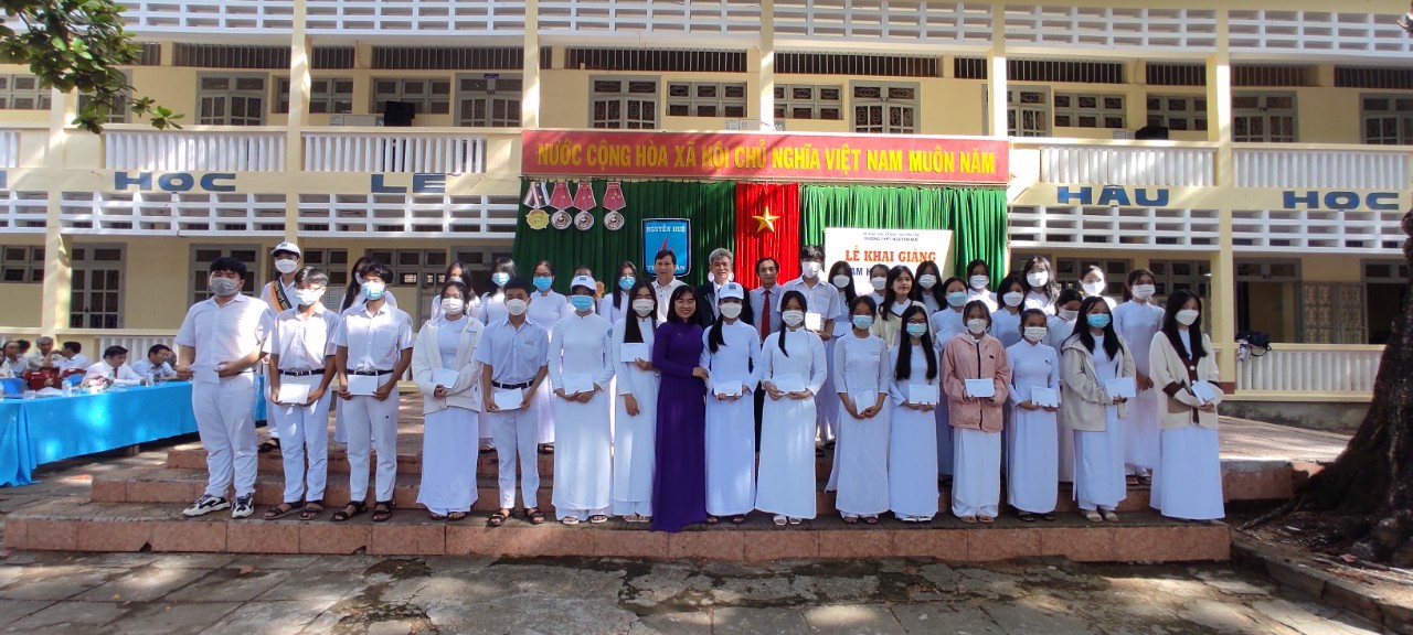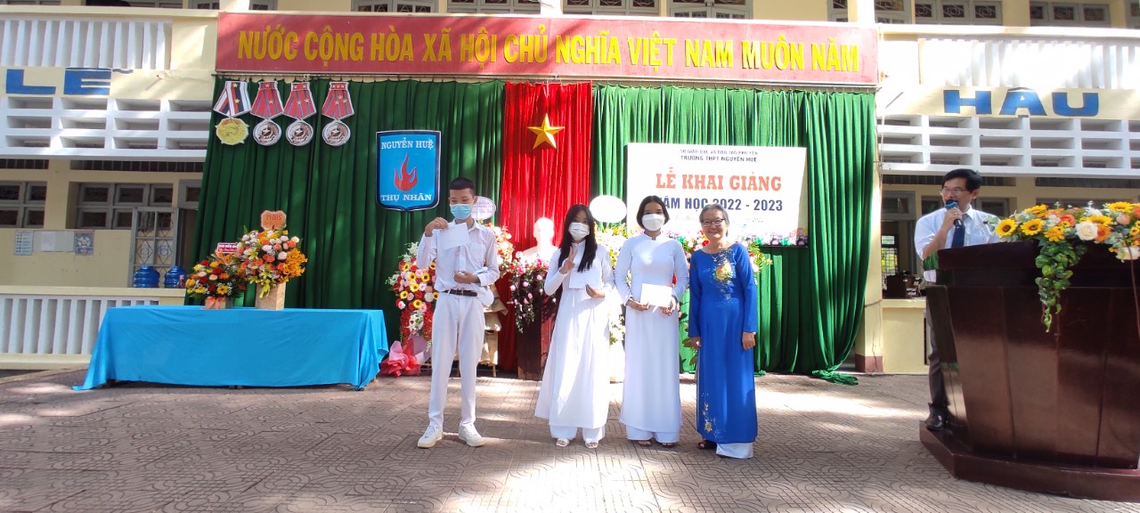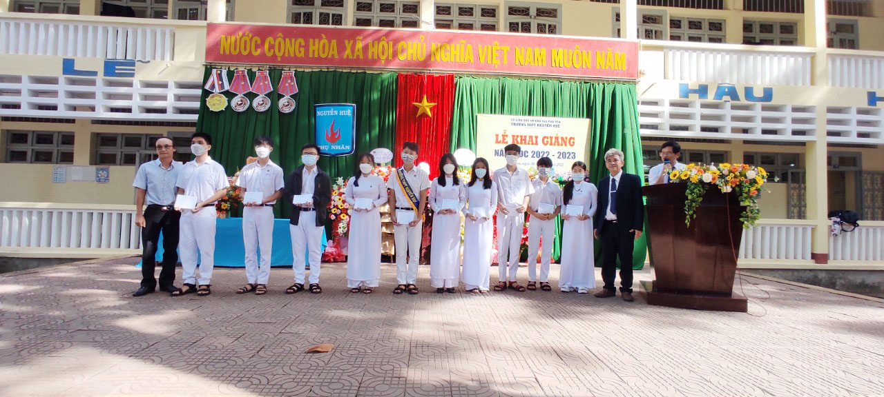 Học bổng của Vợ chồng Ông Nguyễn Phan Nghinh và cô Hồ Thị Kim Oanh (nguyên giáo viên tổ toán trường THPT Nguyễn Huệ ) tặng 20 triệu đồng cho 10 học sinh khối 12 có hoàn cảnh đặc biệt khó khăn.