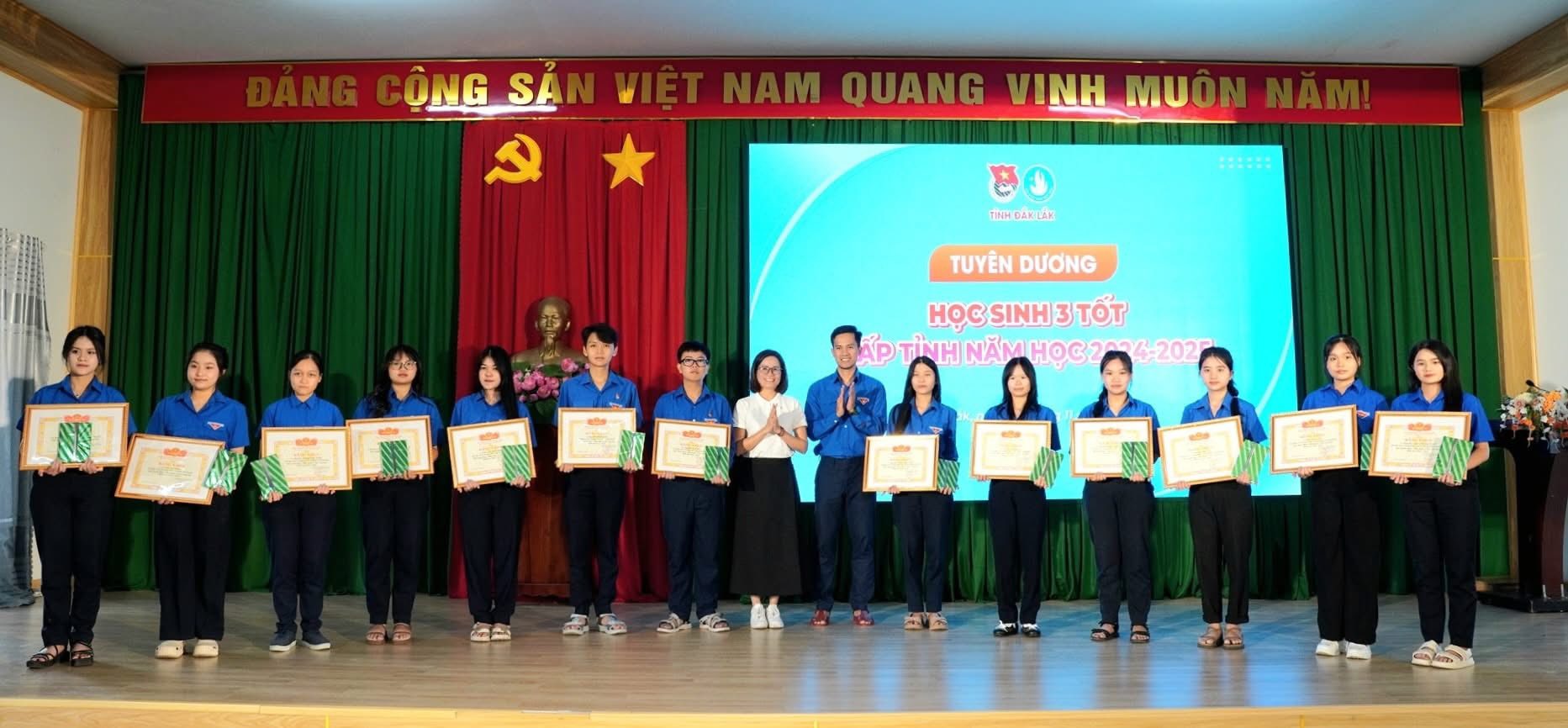 Chiều ngày 15/11/2025, Tỉnh Đoàn Đắk Lắk đã tổ chức lễ trao danh hiệu Học sinh 3 tốt cấp tỉnh cho 46 học sinh xuất sắc trên toàn tỉnh.Trong đó, trường THPT Nguyễn Huệ có 17 học sinh vinh dự được nhận danh hiệu cao quý này.