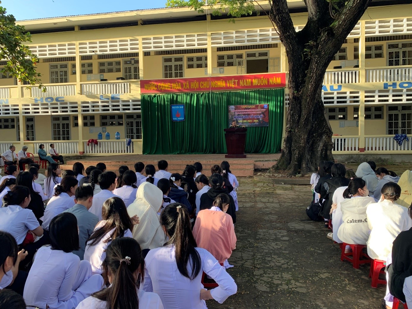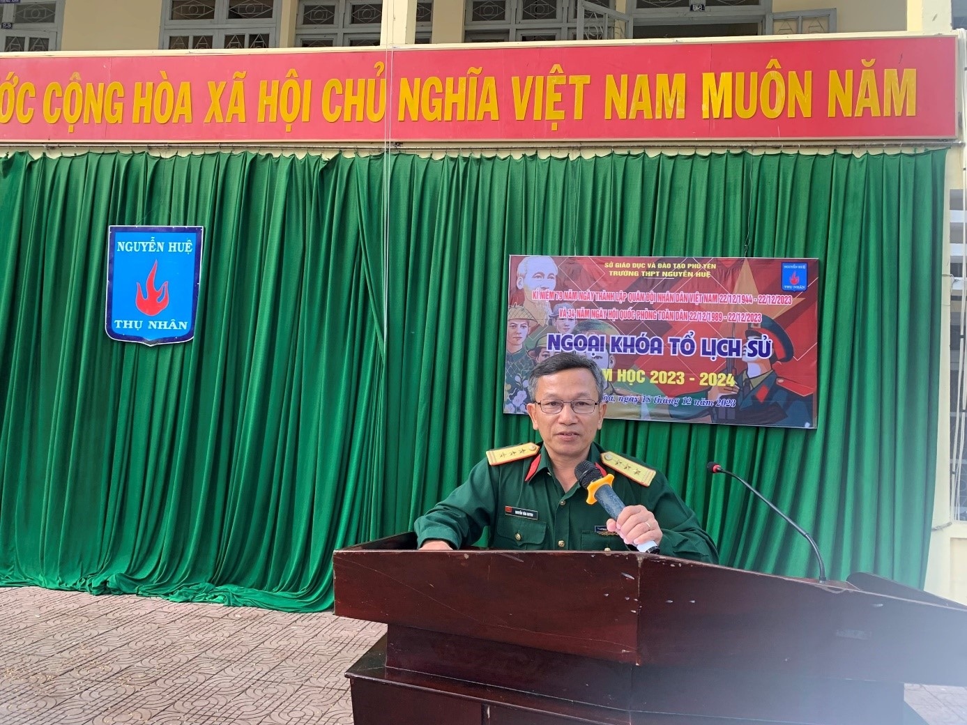 Chiều ngày 18/12, Trường THPT Nguyễn Huệ phối hợp với Ban chỉ huy quan sự thành phố Tuy Hòa đã tổ chức buổi tuyên truyền, giáo dục cho học sinh về truyền thống vẻ vang của dân tộc Việt Nam, Quân đội nhân dân Việt Nam, Lực lượng vũ trang Quân khu và Lực lượng vũ trang tỉnh Phú Yên.
