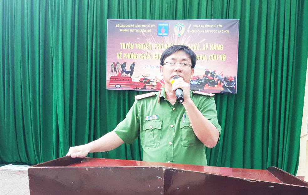 Thượng tá Đào Thế Hải – Phó trưởng Phòng Cảnh sát PCCC và CNCH Công an tỉnh Phú Yên phát biểu tại buổi tuyên truyền