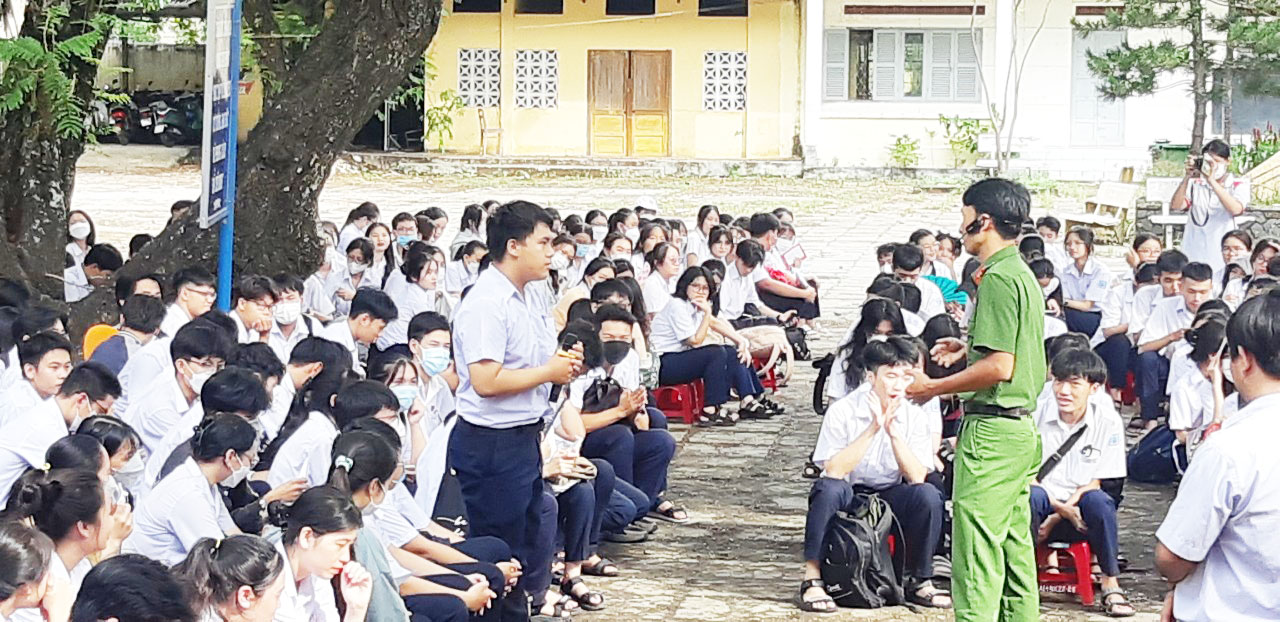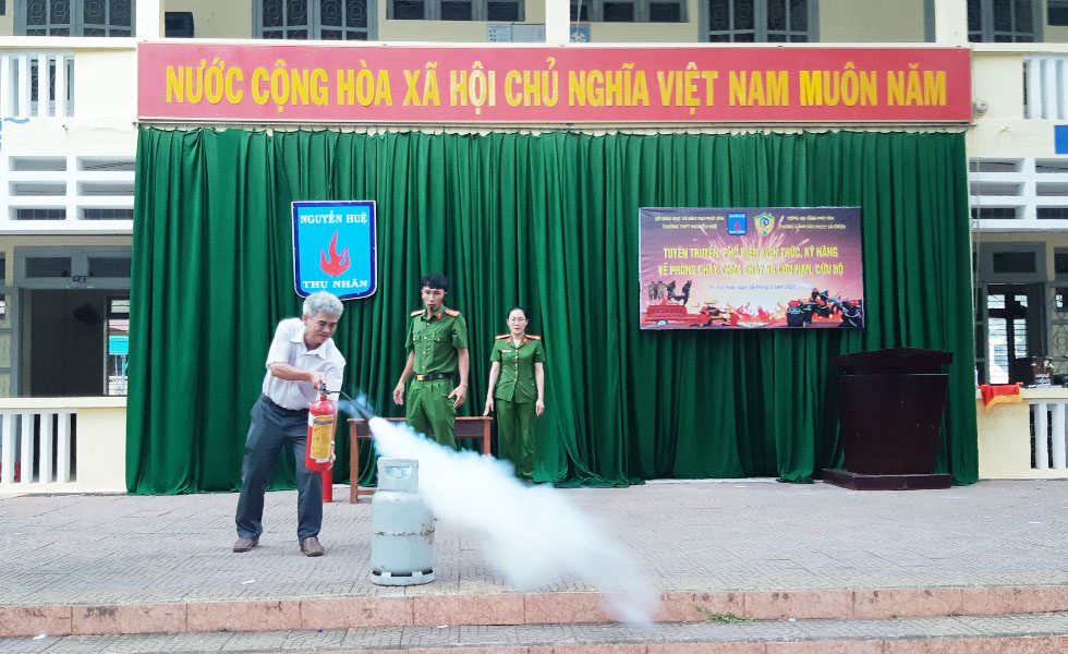 Tại buổi sinh hoạt, Cán bộ giáo viên, công nhân viên và các em học sinh đã được nghe Thượng tá Đào Thế Hải – Phó trưởng Phòng Cảnh sát PCCC và CNCH Công an tỉnh Phú Yên tuyên truyền cung cấp thông tin tình hình cháy nổ của cả nước nói chung cũng như trên địa bàn tỉnh Phú Yên nói riêng. Đồng thời, phổ biến những kiến thức cơ bản về an toàn PCCC cho học sinh như: nêu rõ ý nghĩa, tầm quan trọng của công tác PCCC, quán triệt các nội dung của Luật PCCC và các văn bản hướng dẫn liên quan. Khuyến cáo các nguy cơ cháy, nổ có thể xảy ra tại các trường học; các biện pháp phòng ngừa cháy, nổ trong trường học, gia đình và khu dân cư; kỹ năng xử lý tình huống cháy nổ, kỹ năng thoát nạn an toàn, hướng dẫn sử dụng thiết bị chữa cháy được trang bị, chủ yếu là thao tác sử dụng bình chữa cháy thành thạo và thực hành dập lửa.