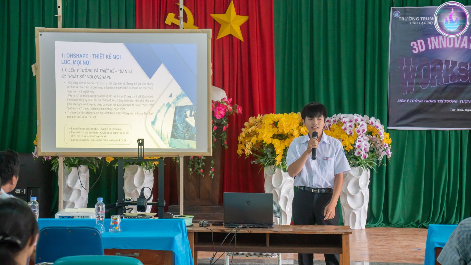 - Em Đặng Ân Ngọc Vũ (Lớp 12A1) – diễn giả về phần mềm Onshape.